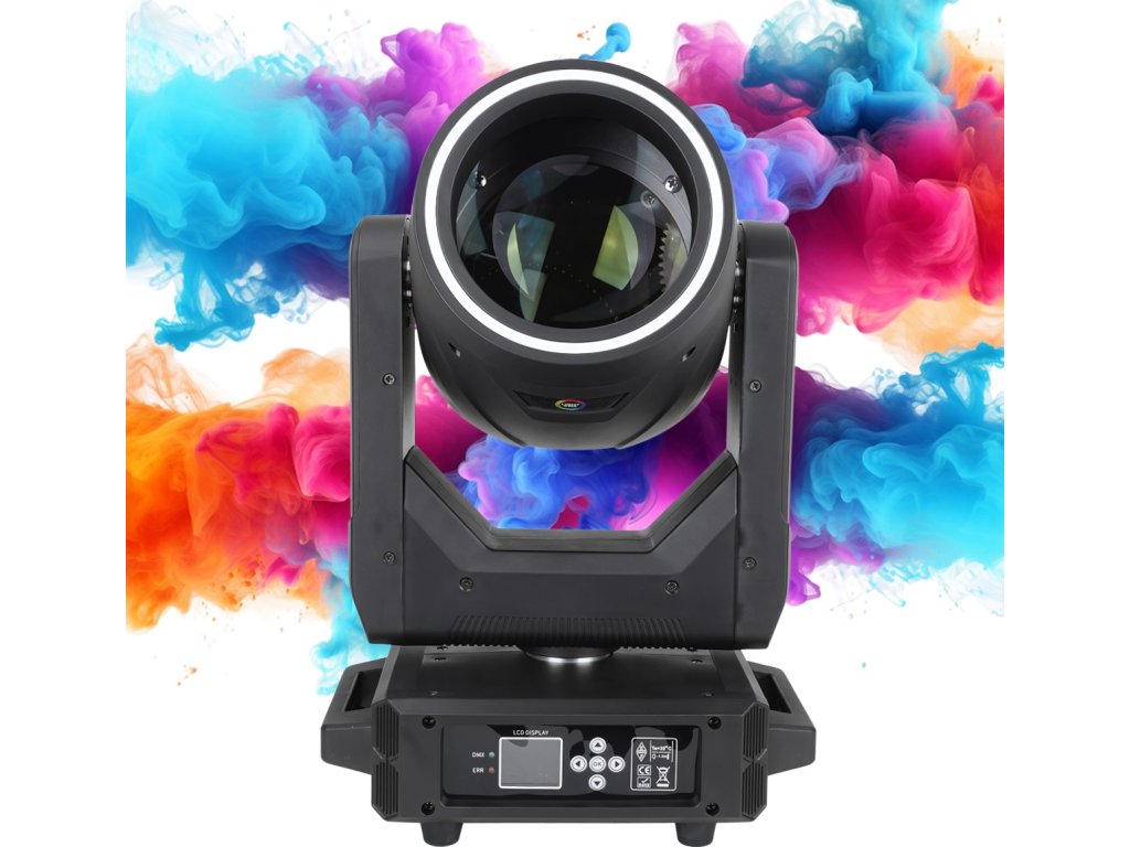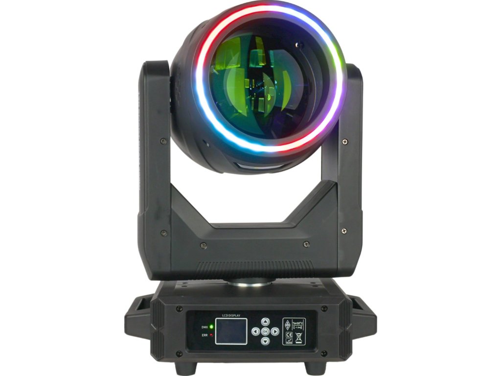 Otočná hlava je vybavena poutavým RGB LED ring efektem s vestavěnými makry a stroboskopem s nastavitelnou rychlostí, který doplňuje hlavní světelný zdroj a dodává scéně energii i barvy. Vestavěná prizmata – 8fasetové a 8+16+24fasetové – s 360° indexací a obousměrnou rotací s nastavitelnou rychlostí nabízejí nekonečné možnosti vytváření prostorových efektů Navíc hlavní stroboskop s efekty Pulse a Random s nastavitelnou frekvencí, barevné kolo se 14 barvami, polobarvami, obousměrným efektem Color Scroll s nastavitelnou rychlostí, kolo statických gobo se 13 vzory, funkcí Gobo Shake a obousměrným efektem Gobo Scroll s nastavitelnou rychlostí, duhový efekt a Frost filtr dodají hloubku každé show. Obohaťte koncerty, firemní akce, divadelní představení nebo velké svatby – je to ideální volba pro pódiové techniky a DJs.