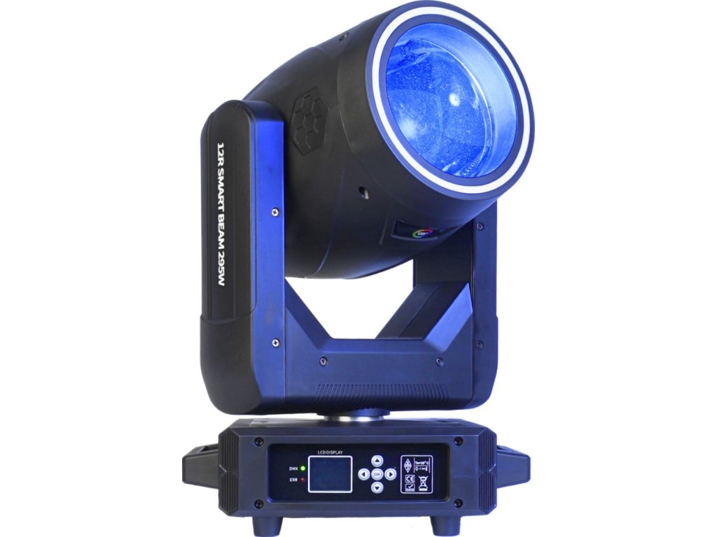 Díky pracovním režimům Auto, DMX, Master/Slave, Sound a jednoduchému manuálnímu ovládání máte plnou svobodu přizpůsobit provoz otočné hlavy Light4Me jakékoli události. Dva režimy DMX kanálů – 16 nebo 22 kanálů – umožňují precizní ovládání všech funkcí – od stmívače (dimmeru) přes prizmata až po elektronické ostření (focus). LCD displej a 5 tlačítek usnadňují konfiguraci a funkce zachování posledního nastavení při ztrátě DMX signálu zaručuje bezpečnost show. Light4me 12R Smart Beam 295W je nástroj, který ocení každý pódiový technik a osvětlovač.