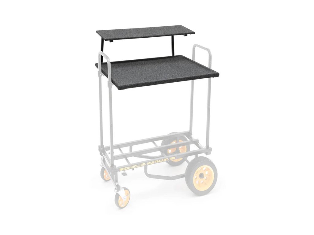 2-Tier Multimedia Shelf je pevná a odolná police, která přináší efektivní a rychlé řešení pro přeměnu vozíku R8, R10 a R12 na mobilní pracovní plochu. Díky snadné montáži a demontáži pomůže přídavná police zefektivnit práci a využít vozík RockNRoller naplno, což ocení především technici, hudebníci i produkční týmy při transportu citlivé techniky.