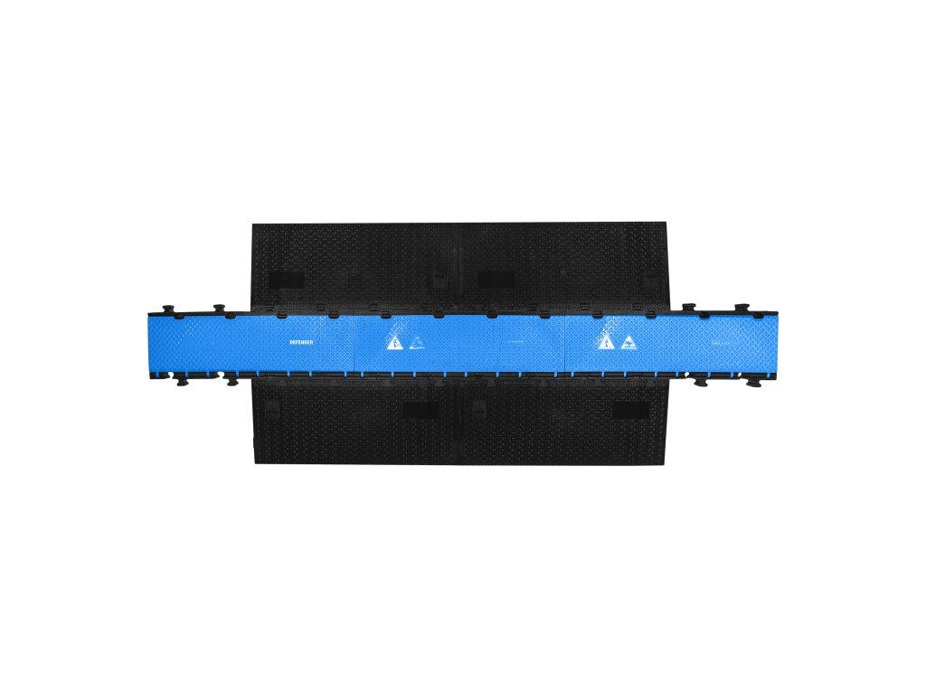 Systém DEFENDER 3 2D představuje modulární kabelový most navržený pro zajištění optimální bezbariérové průchodnosti. Tento systém, vycházející z osvědčeného Defender 3, nabízí tři velké kanály pro bezpečné vedení kabelů či hadic. Skládá se z centrálních dílů a plochých ramp, které lze libovolně prodlužovat a kombinovat pro dosažení požadované délky i šířky. Manipulace s jednotlivými díly je navíc mimořádně snadná.