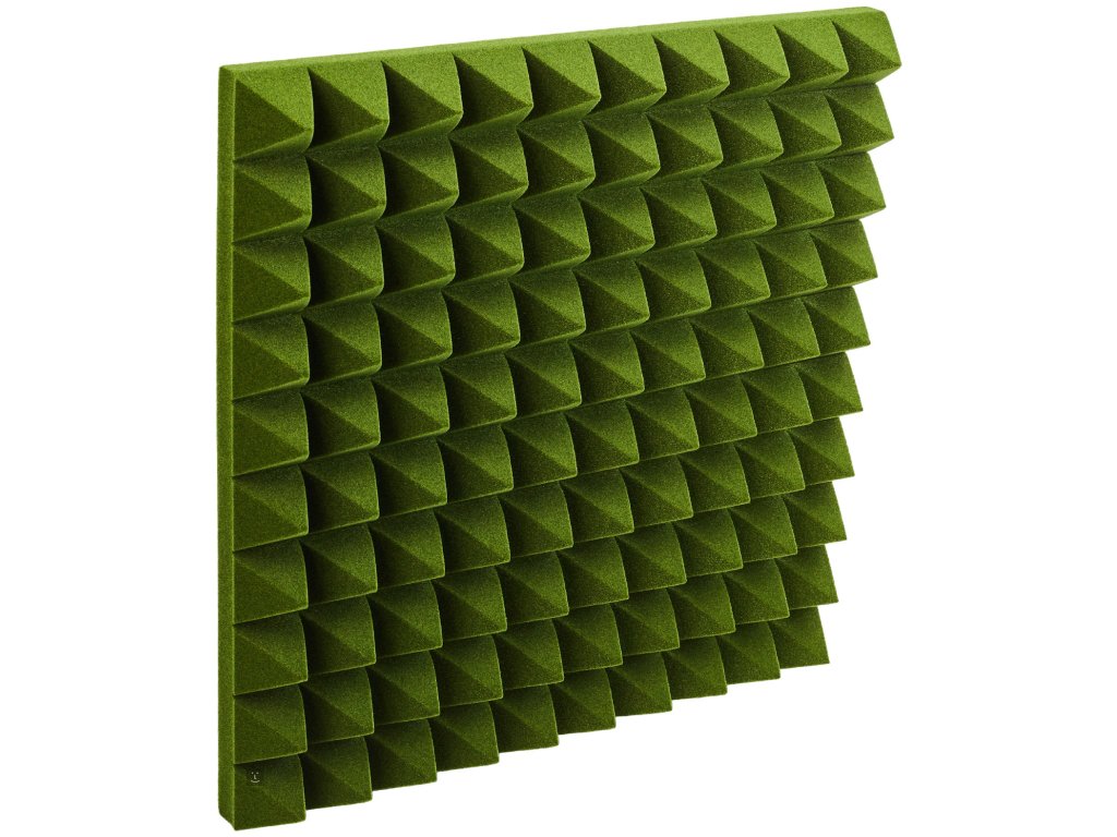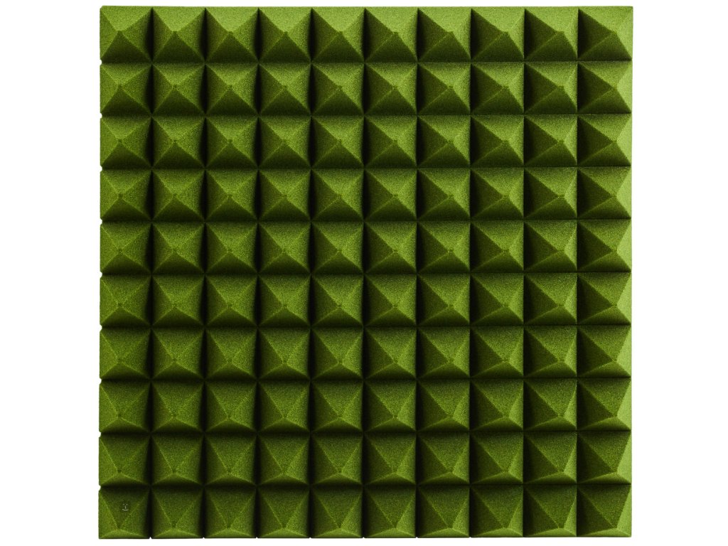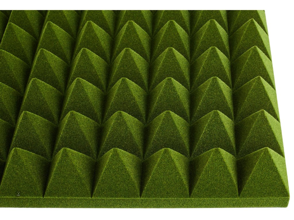 Akustický molitan Pyramid 50mm Green představuje efektivní a designově zajímavé řešení pro zlepšení akustiky vašeho prostoru. Tyto pěnové panely o rozměru 50 x 50 cm a tloušťce 5 cm disponují charakteristickým jehlanovým vzorem.