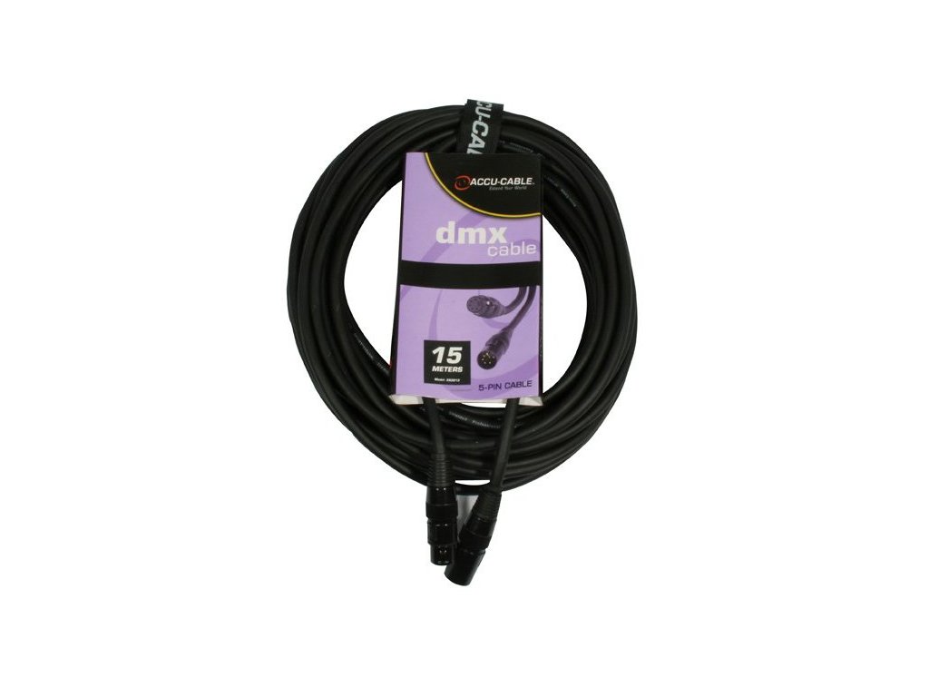 DMX kabel s konektorem XLR 5-Pin. Určený k propojení světelných efektů. Délka: 15m.
