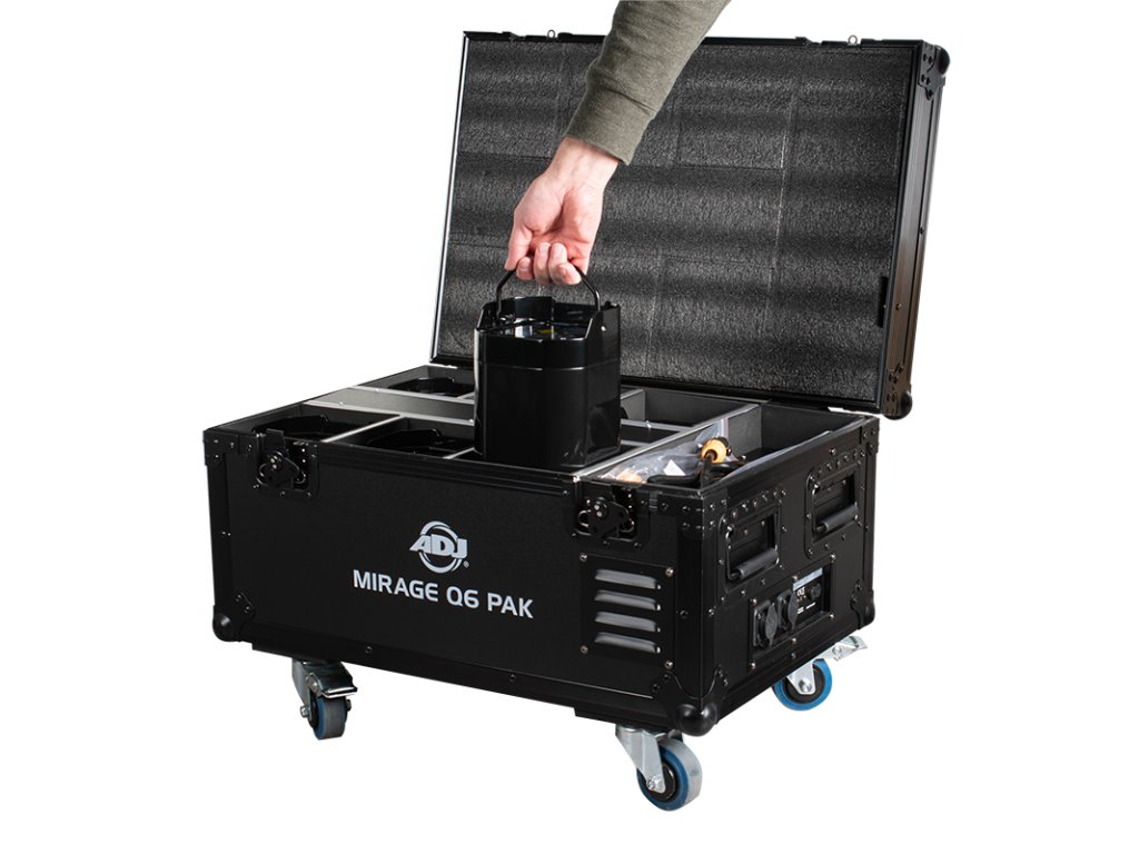 ADJ Lighting Mirage Q6 Pak Black je univerzální osvětlovací systém šesti ks světel s krytím IP65 pro venkovní i vnitřní použití. Svítidla jsou napájena z baterie a odolným přepravním kufrem s integrovaným řešením nabíjení baterie.