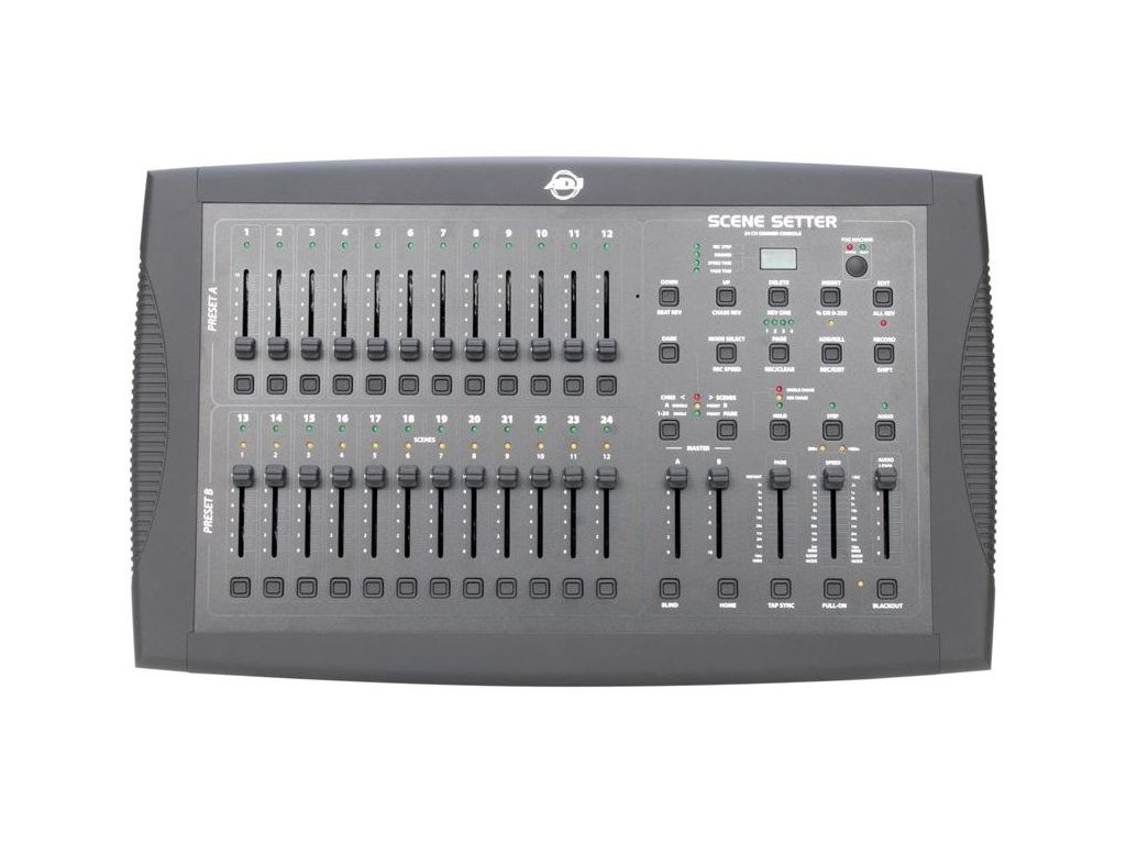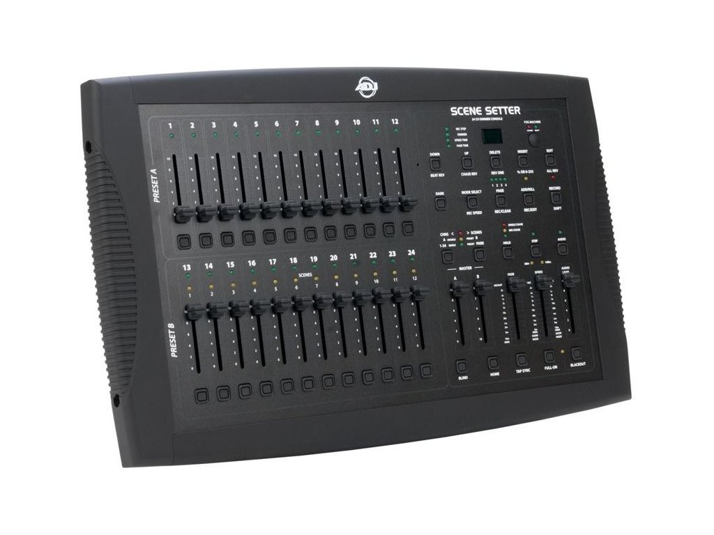 ADJ Scene Setter je 24-kanálová stmívací konzole určená k řízení úrovní konvenčního zábavního osvětlení. Díky mnoha vestavěným přeprogramovatelným scénám a sekvencím můžete rychle a snadno vytvářet a spravovat světelné show. Tento přenosný řídicí systém je ideální pro živá vystoupení, mobilní DJs, kluby, bary nebo jakékoli profesionální akce, které vyžadují konvenční stmívání 24 kanálů nebo méně.