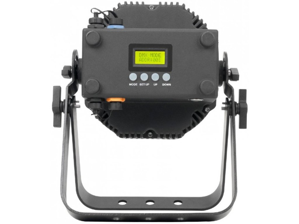 - 6 provozních režimů: statické barvy; RGBAW + UV stmívací režim; změna barev; barevné stíny; Auto Run (Program Run); a DMX řízení