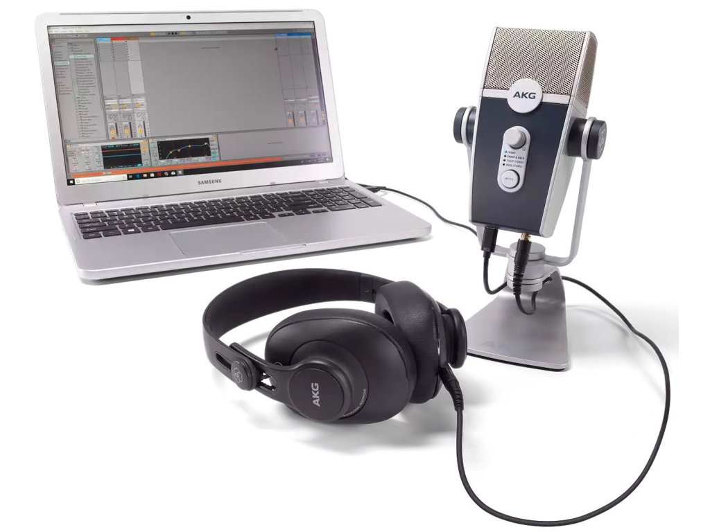 Podcaster Essentials je set mikrofonu AKG Lyra USB a sluchátek AKG K371.
