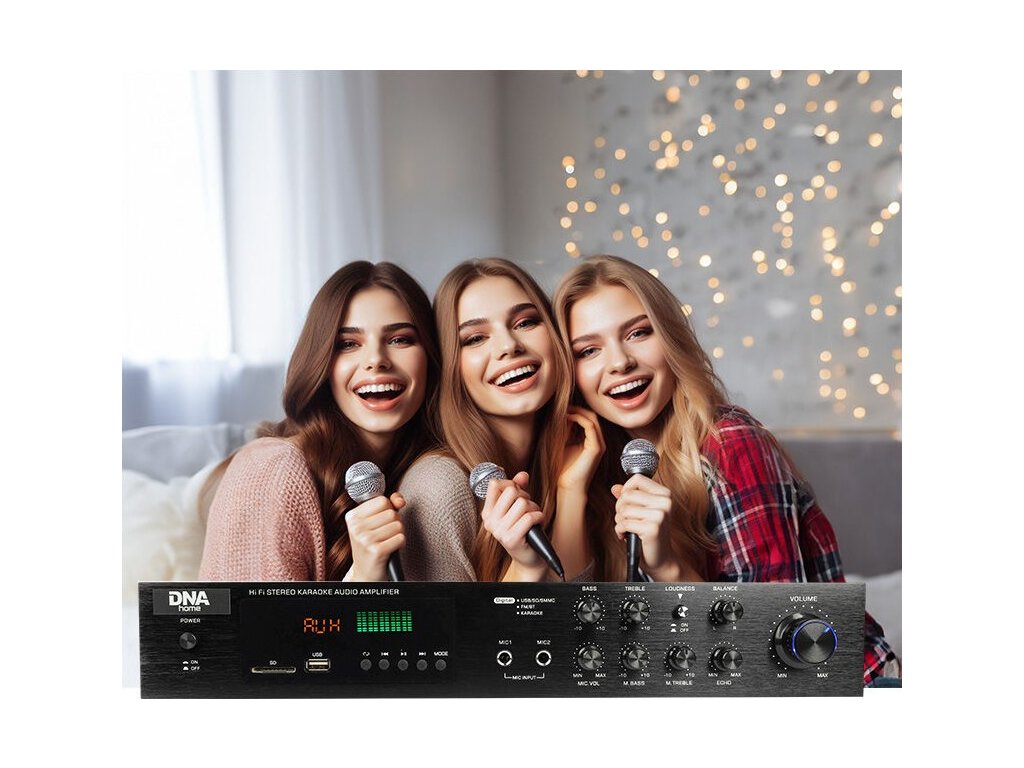 Pokud hledáte vybavení pro karaoke, DNA AMPLI 5.0 je tou nejlepší volbou. Díky dvěma mikrofonním vstupům můžete zpívat skladby svého oblíbeného interpreta, a to buď sami, nebo v duetu. Regulace basů a výšek spolu s nastavitelným efektem echa zajistí, že váš hlas bude znít ve výjimečně vysoké kvalitě.