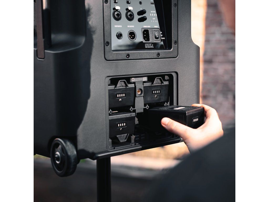 4 baterie a funkce hot-swap umožňují nepřetržitý provoz ANNY 12 bez přerušení. Dokud je připojena alespoň jedna ze čtyř baterií, ANNY bude pokračovat v přehrávání na plný výkon, takže vybitou baterii lze během provozu jednoduše vyměnit za plně nabitou nebo je střídat při nabíjení. Díky energeticky úspornému nastavení ECO vydrží baterie při přehrávání hudby na pozadí nebo při použití pouze pro hlasové aplikace obzvláště dlouho. Při střední hlasitosti v tomto režimu vydrží 4 baterie až 50 h, aniž by bylo nutné je vyměnit. Při večírcích s maximální hlasitostí vydrží v nastavení MUSIC úctyhodných 5 h.