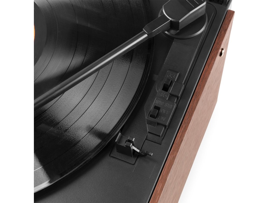 - Ruční nebo automatické zastavení tónového ramene (spínač zapnutí/vypnutí)