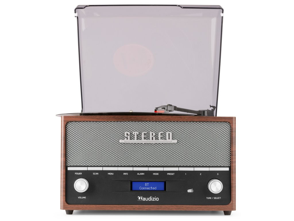 S moderním nádechem klasického designu dodává gramofon Frisco s DAB+/FM rádiem retro atmosféru do každého obytného prostoru. Tento all-in-one systém je vybaven systémem stereo reproduktorů a díky snadno použitelným předvolbám stanic je tento digitální gramofon s rádiem nutností v každé domácnosti. Je také vybaven nastavitelným 2 rychlostním gramofonem a DAB+ digitálním a FM rádiem, takže můžete přijímat všechny své oblíbené stanice a různá další hudební média prostřednictvím BT streamingu. Použijte USB port pro přímé přehrávání z USB flash disku. Rádio Frisco má krásný dřevěný exteriér a luxusně zpracovanou látkovou mřížku, takže se hodí téměř do každé místnosti nebo prostředí.