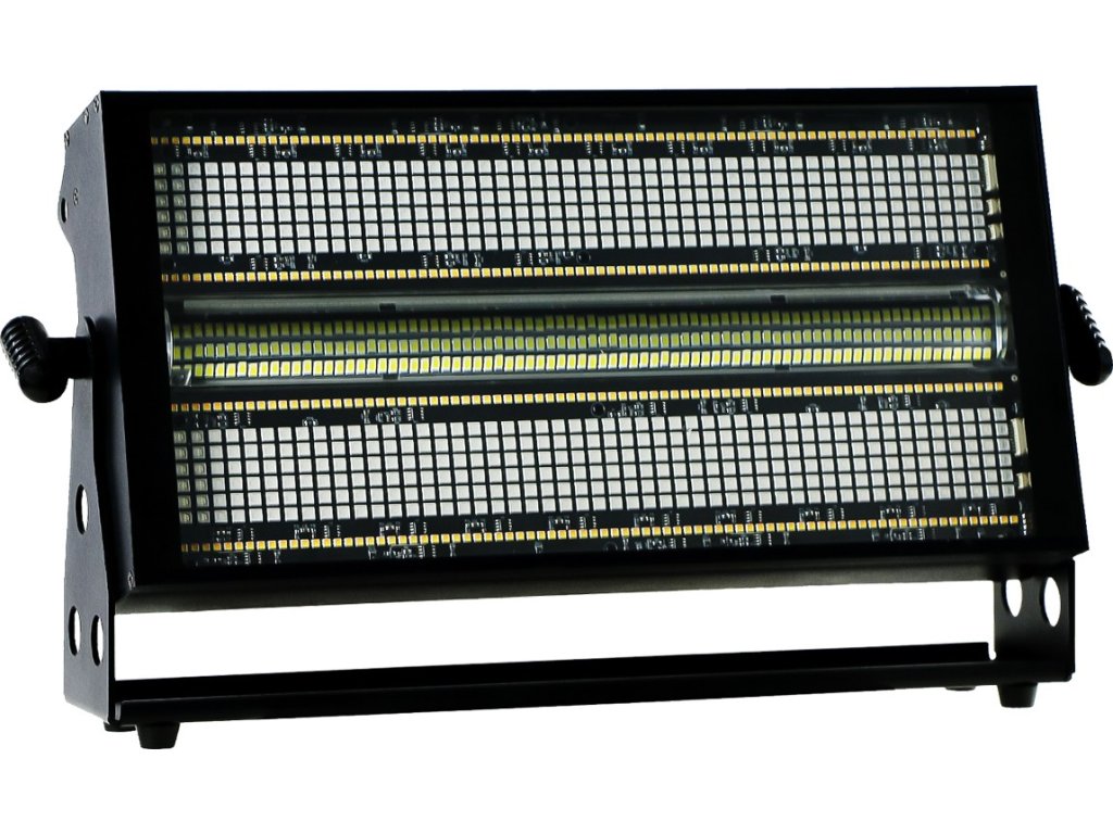 Light4Me Aurora Strobe je moderní LED stroboskop, který zajišťuje působivý světelný efekt na pódiích, v klubech i na diskotékách. Díky 560 diodám CW/A (studená bílá, jantarová) o výkonu 1 W každá s úhlem vyzařování 55° a 600 diodám RGB 3v1 (červená, zelená, modrá) o výkonu 0,2 W každá s úhlem vyzařování 120°, nabízí zařízení širokou paletu dynamických světelných efektů. Nastavitelná rychlost stroboskopického efektu (0-20 Hz) a lineární stmívač v plném rozsahu umožňují ideální přizpůsobení každé situaci. Bez ohledu na to, zda pořádáte koncert, klubovou party nebo menší venkovní akci pod zastřešením, toto vybavení splní vaše očekávání.
