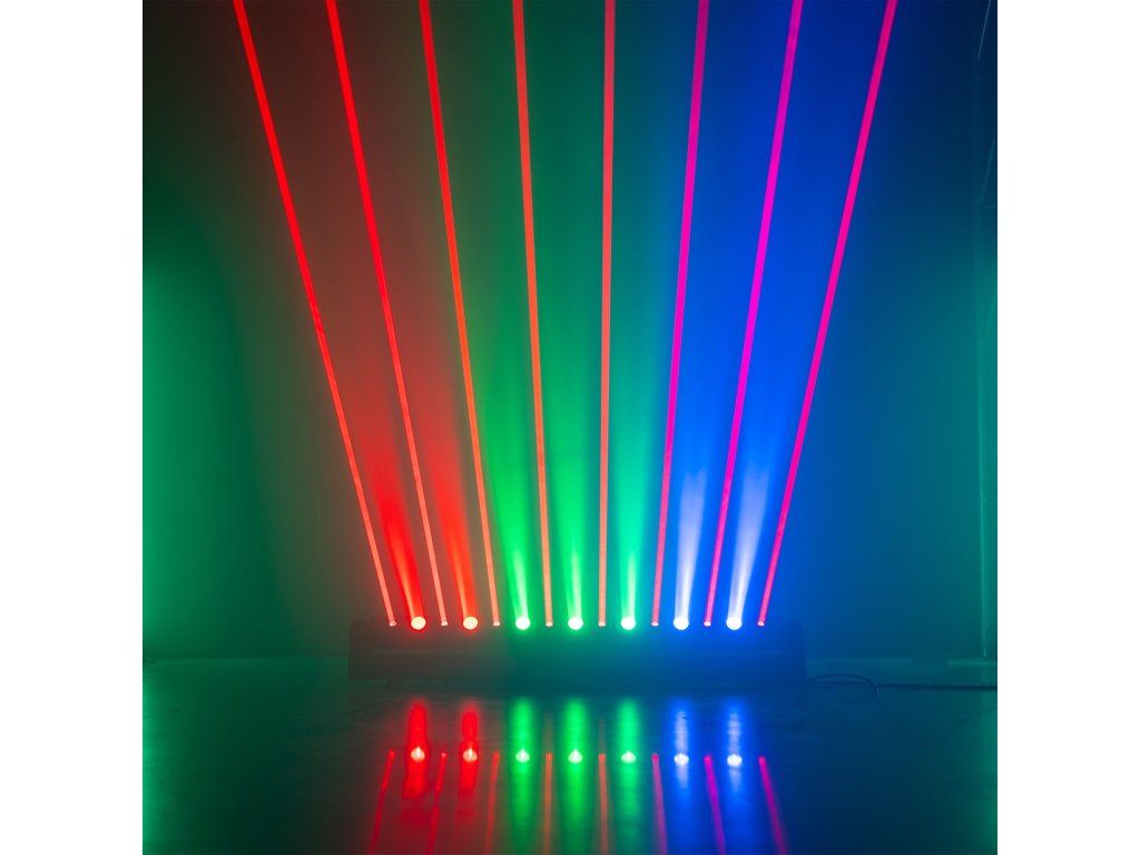 - Efekty: 7x silný LED paprsek + 8x laserový paprsek