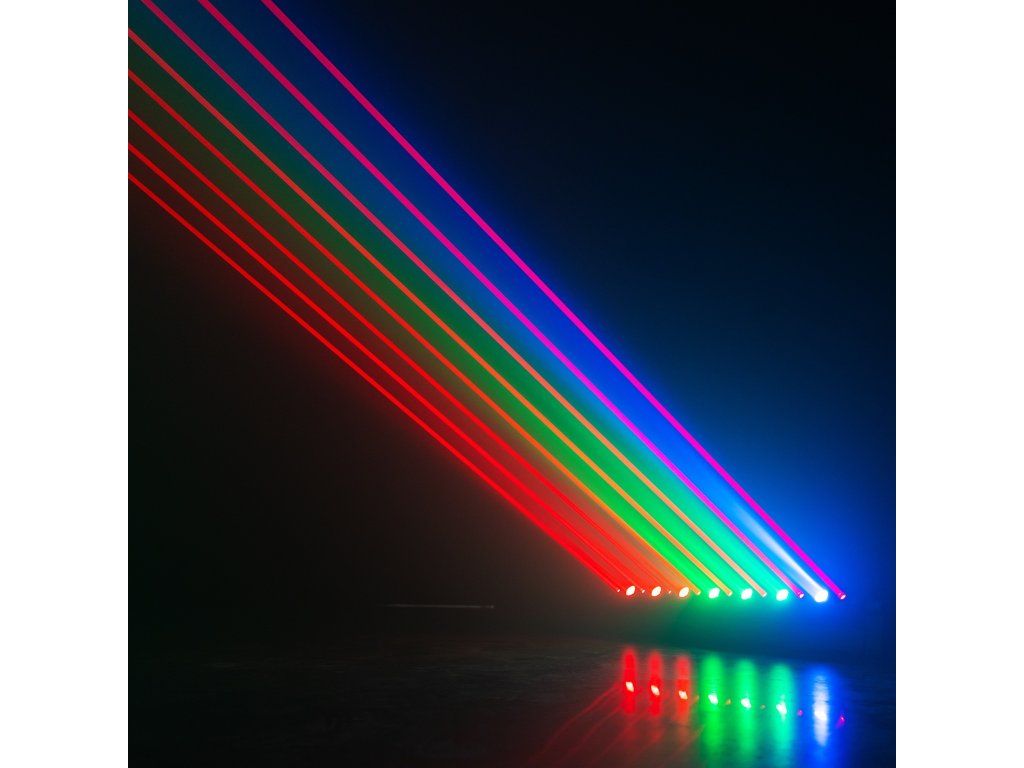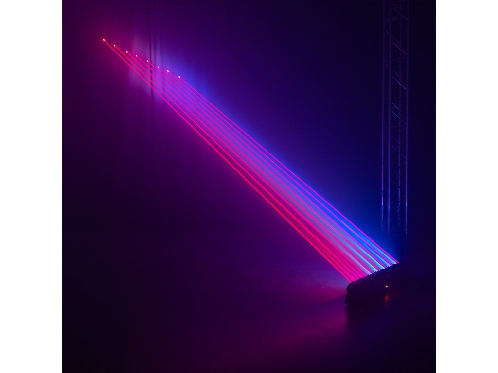 - Pohyblivý LED bar se silnými 5° paprsky a červenými laserovými efekty