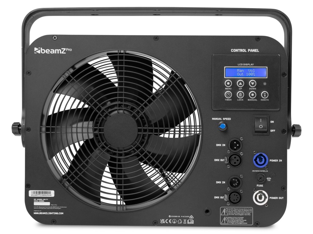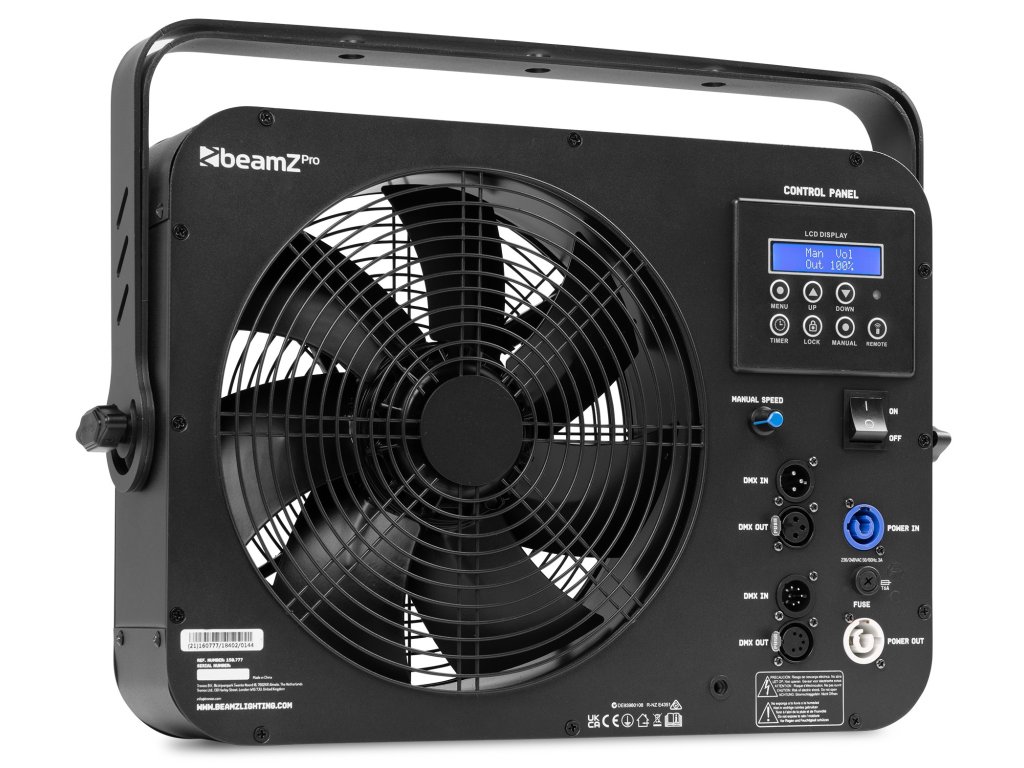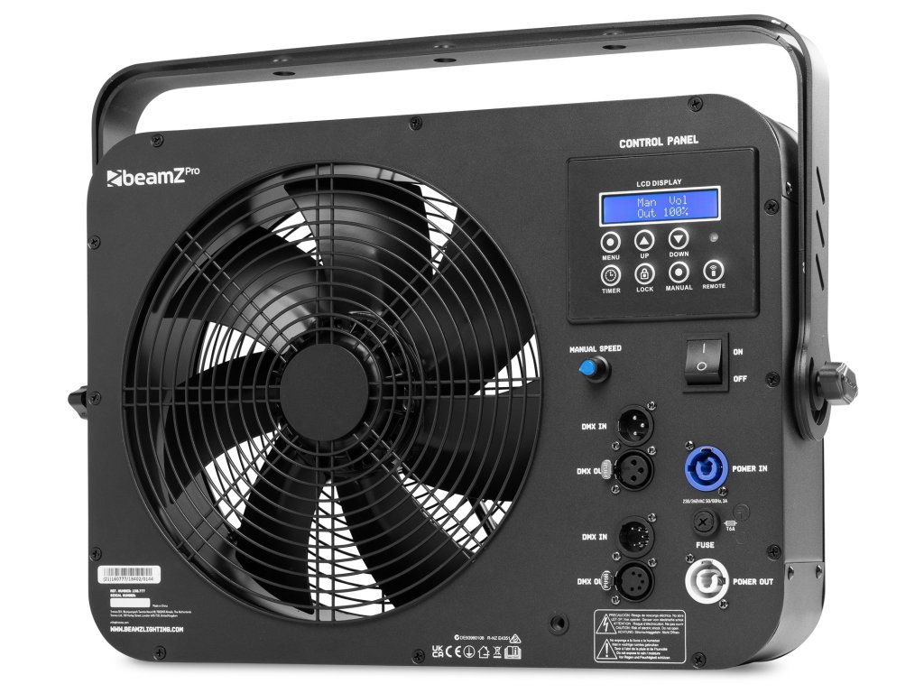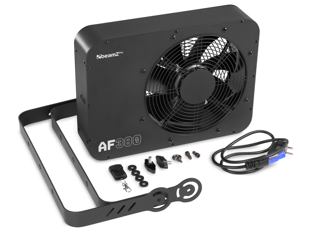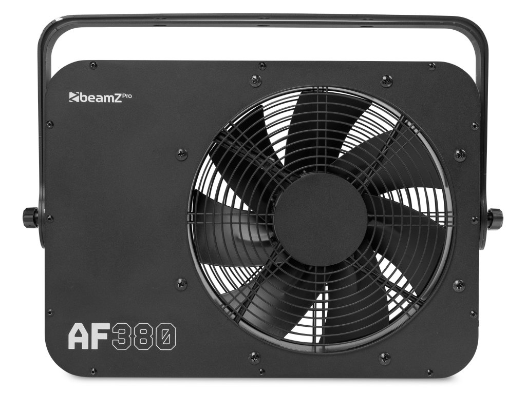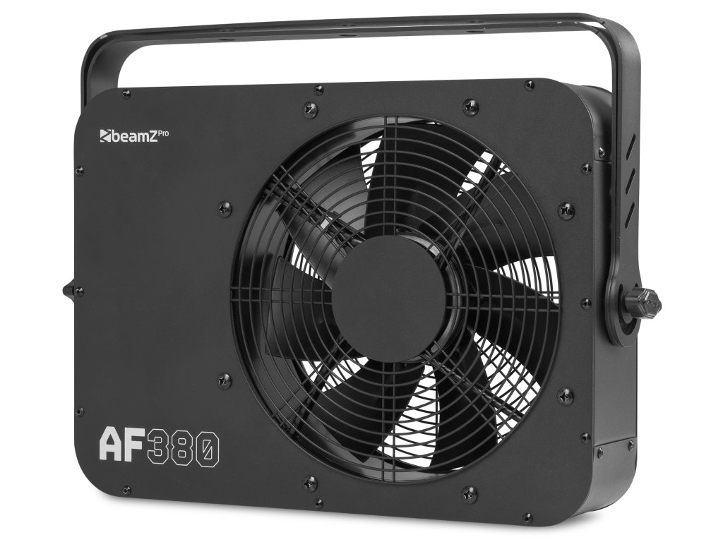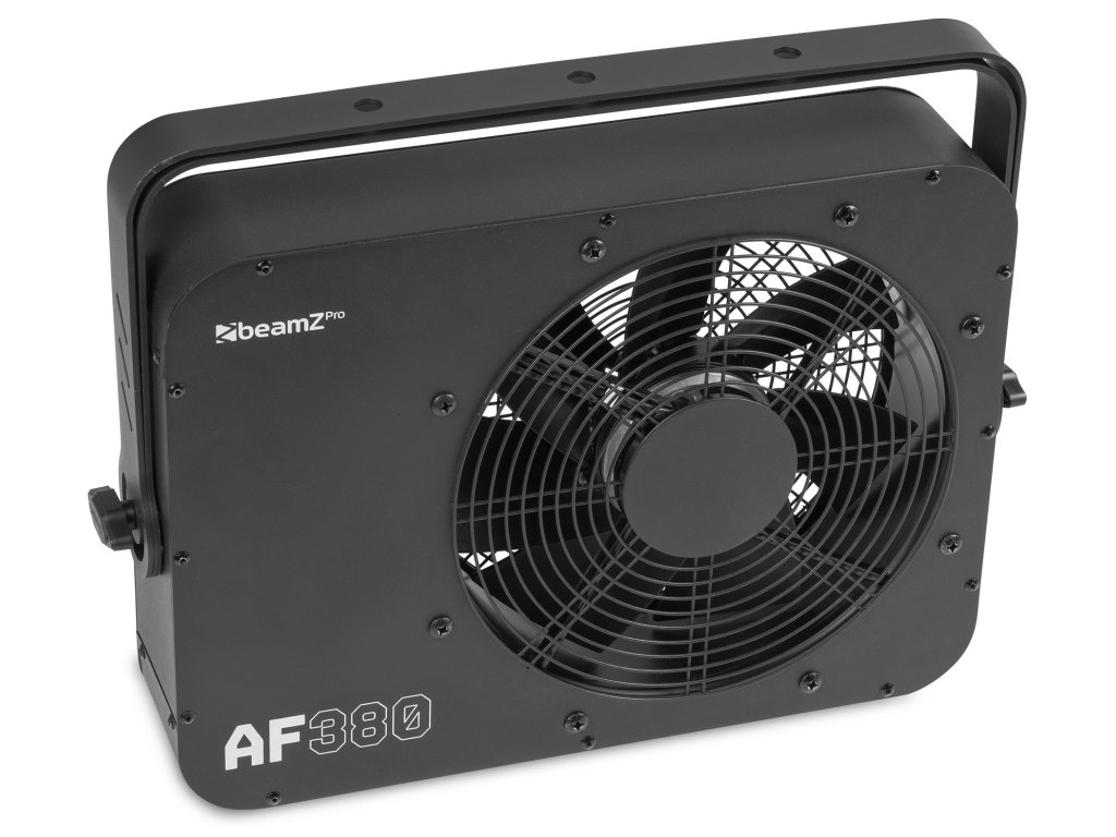 AF380 je axiální ventilátor s DMX ovládáním, určený pro poloprofesionální a profesionální použití. Ventilátor AF380, vybavený výkonným motorem, vytváří vysoké rychlosti větru. Jeden DMX kanál řídí rychlost ventilátoru od pomalé po rychlou. Ventilátor je vhodný pro různé aplikace, například rozptyl kouře, mlhy, bublin a konfet.