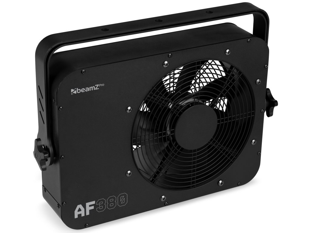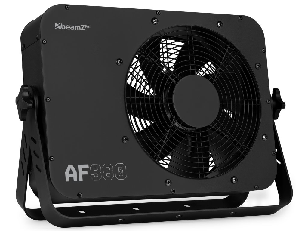 AF380 je DMX řízený axiální ventilátor pro poloprofesionální a profesionální použití. Ventilátor AF380, vybavený výkonným motorem, vytváří vysoké rychlosti větru. Jeden DMX kanál řídí rychlost ventilátoru od pomalé po rychlou. Vhodné pro různé aplikace, například šíření kouře, mlhy, bublin a konfet.