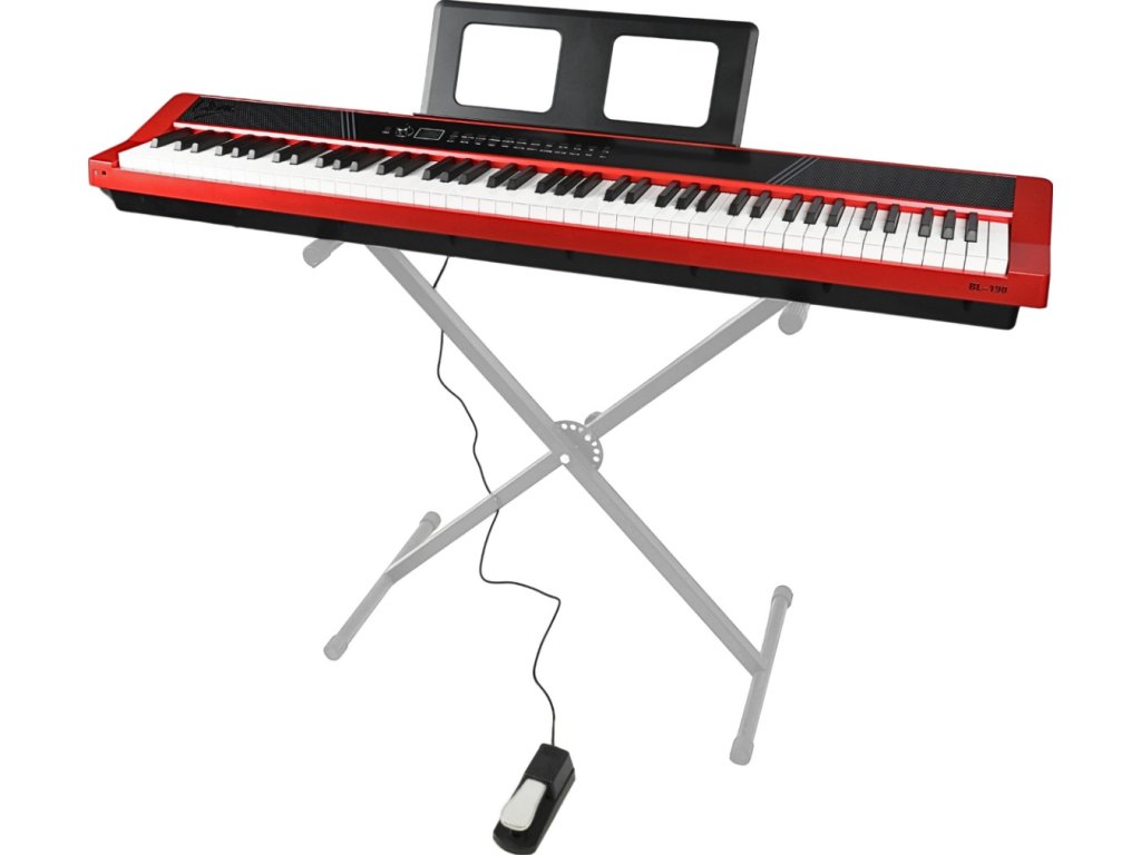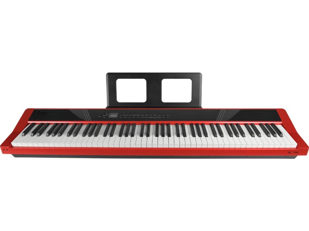 Model BL-190 je vybaven Bluetooth, USB-B vstupem a MIDI vstupem, což z něj činí skvělou volbu jak pro výuku, tak pro domácí studio. Díky 3 sluchátkovým výstupům můžete cvičit v tichosti – ideální řešení pro učitele a žáky během lekcí. Sustain pedál, stojan na noty, audio vstup i výstup, možnost provozu na baterie a přehledný LCD displej s potenciometrem a tlačítky zajišťují pohodlí a svobodu při používání. Piano funguje jak se síťovým adaptérem, tak na 6 baterií AA (nejsou součástí balení) – ideální řešení pro venkovní hudební seance.