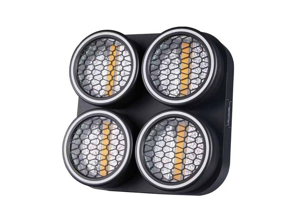 Light4Me Blinder Led 4 Ring disponuje čtyřmi výkonnými 30wattovými LED diodami, které vyzařují teplé bílé světlo o barevné teplotě 2000 K. Všechny čtyři diody mohou svítit nezávisle, pracovat v nepřetržitém režimu nebo vytvářet stroboskopické efekty. Intenzitu světla lze snadno ovládat pomocí lineárního stmívače – od jemného podsvícení až po intenzivní záři. Díky tomu se reflektor skvěle osvědčuje jak na malé, tak na velké scéně, stejně jako v tanečních klubech a diskotékách.