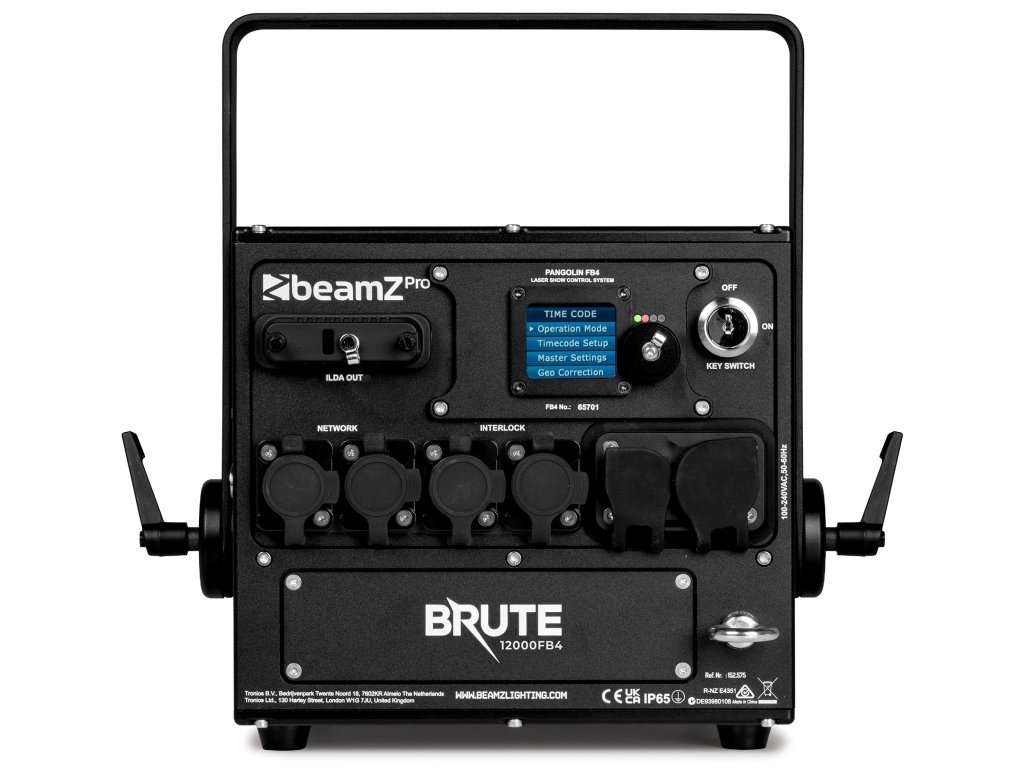 Brute 12000 FB4 má garantovaný výstupní výkon 12 W a využívá analogovou modulaci, která zajišťuje plynulejší přechody barev a mnohem širší barevné spektrum. Díky kombinaci tohoto vysokého výkonu s přesnými 35K grafickými skenery poskytuje laser vynikající přesnost a kvalitu paprsku, což ho činí velmi vhodným pro náročné profesionální aplikace. Systém lze ovládat pomocí vestavěného ovladače Pangolin FB4 nebo provozovat v automatickém stand-alone režimu. Díky konstrukci těla s krytím IP65 je Brute 12000 FB4 plně chráněn proti prachu a vodě, což ho činí ideálním pro vnitřní i venkovní instalace.