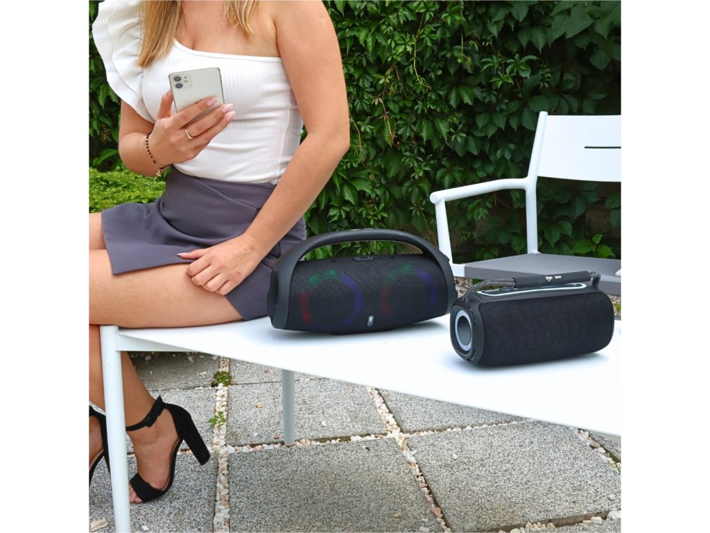 V-TONE BWS210 BK je moderní, přenosný Bluetooth reproduktor v elegantním černém provedení. Reproduktor umožňuje přehrávat hudbu přímo z vašeho telefonu, smartphonu, tabletu, notebooku nebo jiného zdroje zvuku díky podpoře standardu Bluetooth 5.1 a vstupu AUX. Disponuje také portem USB-A, slotem pro microSD karty, vestavěným MP3 přehrávačem a FM rádiem, což z něj činí ideálního společníka pro dlouhé večírky i menší venkovní akce. Skvěle se hodí na pikniky, posezení u ohně nebo narozeninové oslavy na zahradě.