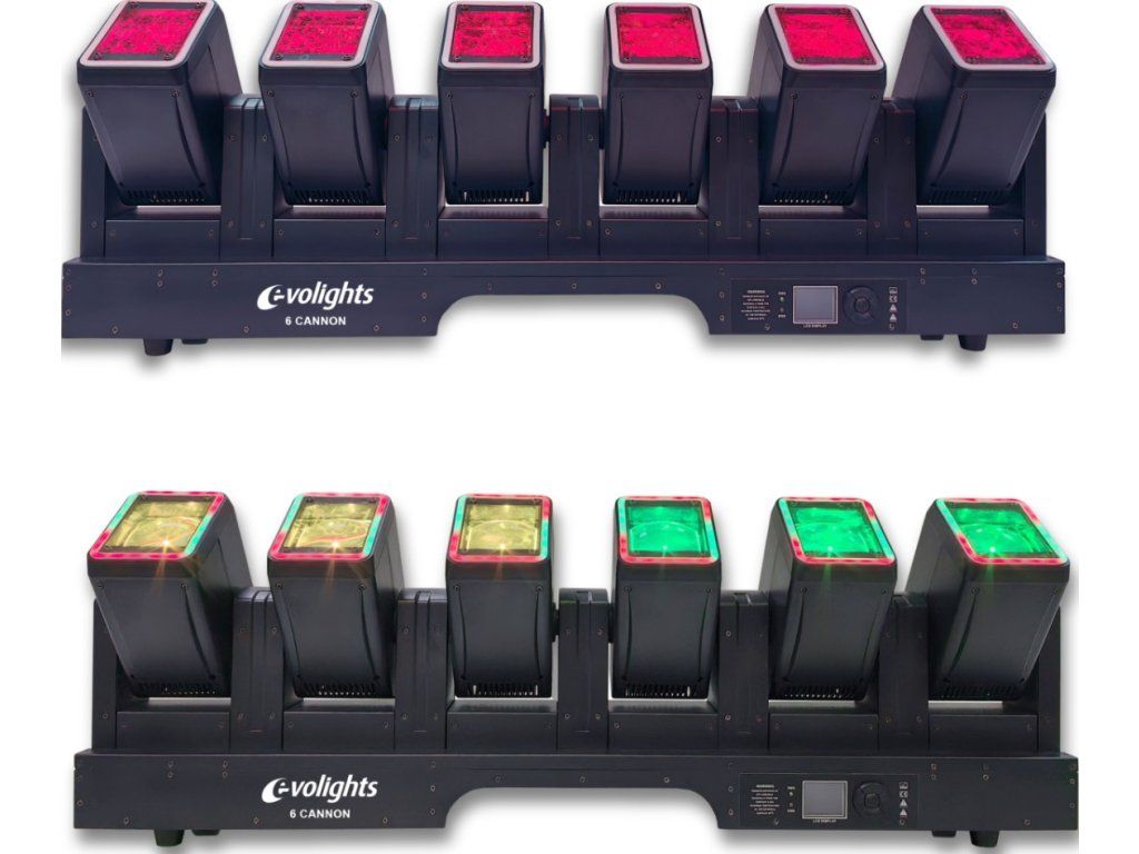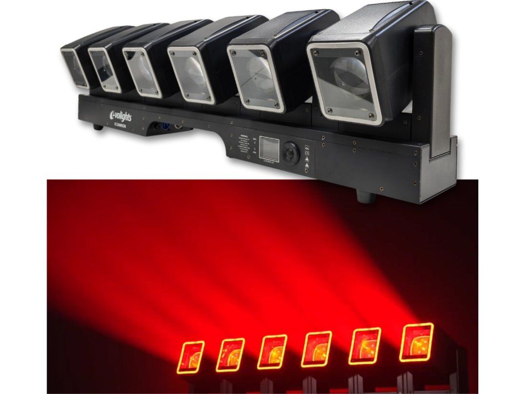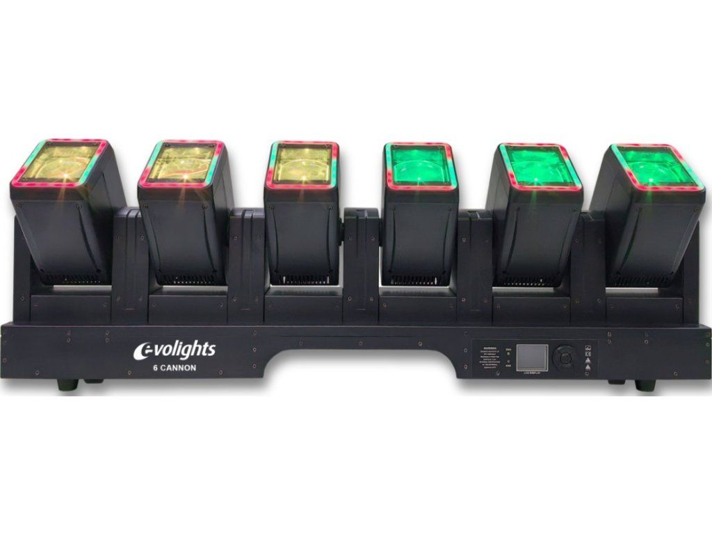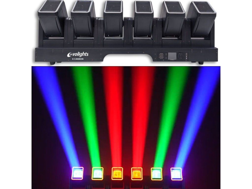 Scénické osvětlení Evolights 6 Cannon to idealne rozwiązanie dla tych, którzy chcą stworzyć nezapomenutelnou atmosféru na svatbách, firemních akcích, koncertech nebo v klubech Profesionální parametry, široká škála efektů a intuitivní ovládání uspokojí i náročné techniky. Investujte do Evolights 6 Cannon a proměňte každou událost v podívanou, na kterou nikdo nezapomene.