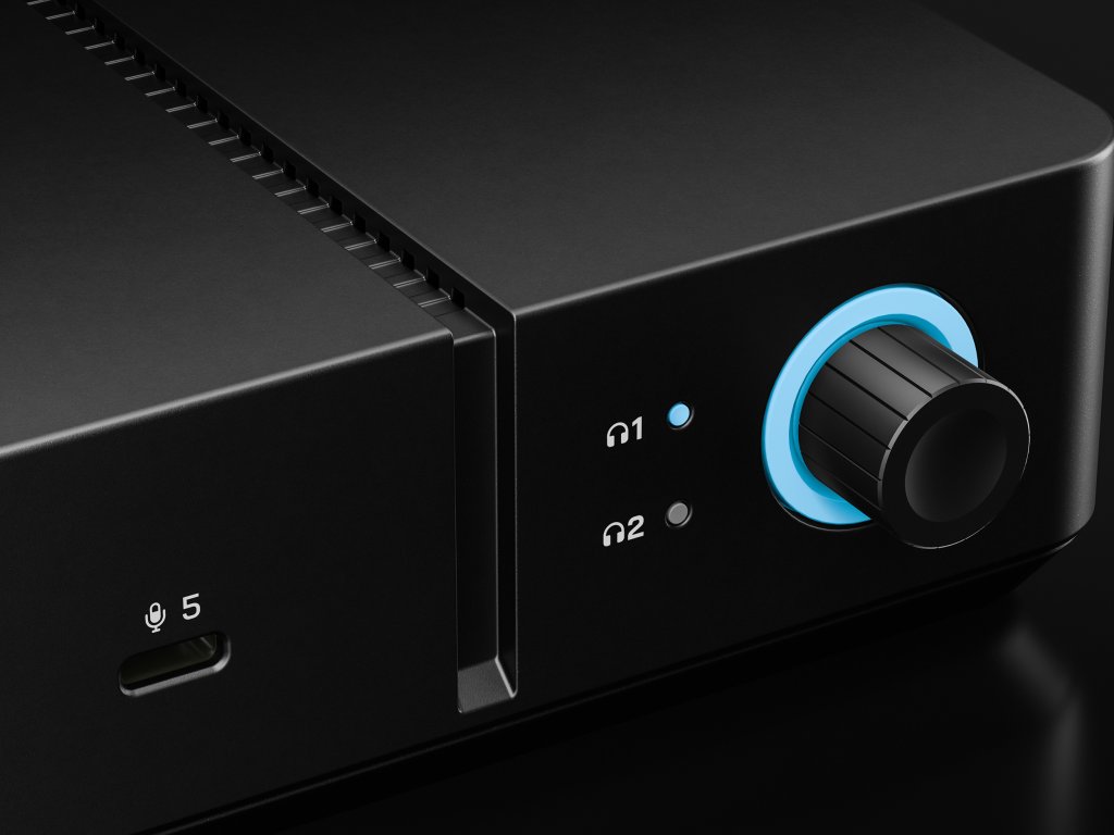 Zařízení je vybaveno 2× sluchátkovým výstupem (6,3 mm TRS) s možností nezávislé konfigurace výstupního mixu. Každý výstup lze samostatně směrovat a nastavit úroveň signálu včetně individuálního mixu podle potřeb monitoringu nebo produkce.