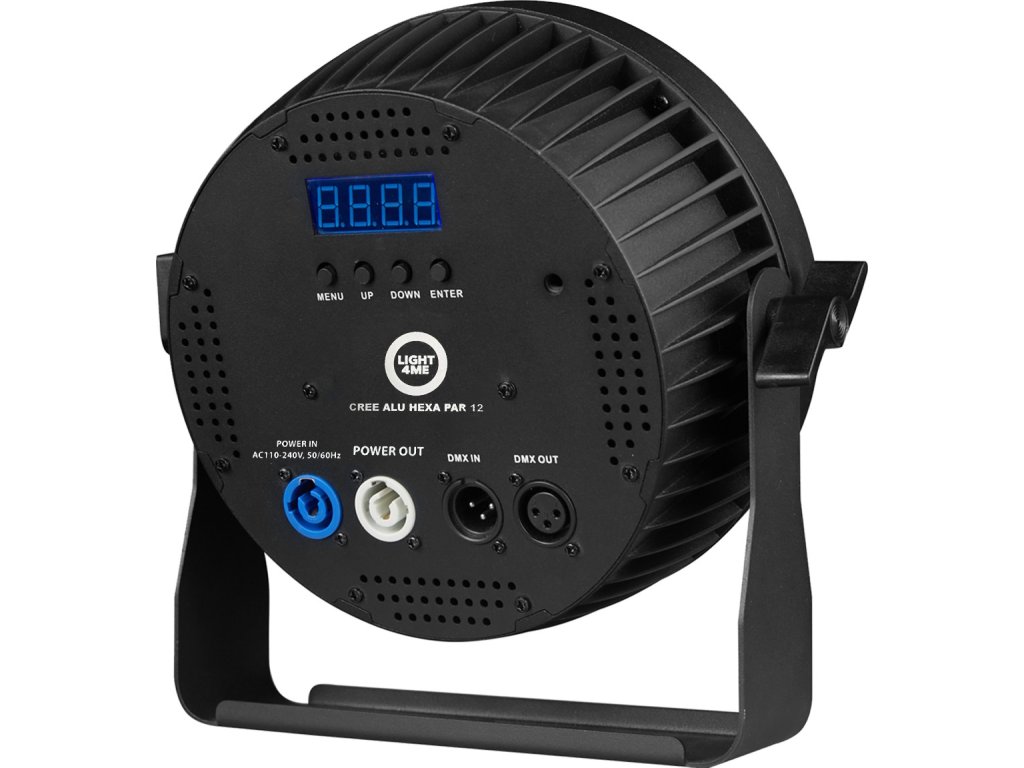 Tento reflektor ocení jak profesionálové, tak nadšenci Profesionální technické týmy mohou využít datové konektory pro pokročilé ovládání osvětlení pomocí protokolu DMX. Nadšenci mohou využít režimy auto a sound pro snadné spuštění světelných efektů. Na zadní straně reflektoru se nacházejí napájecí zásuvky Powercon, včetně tzv. „power link“ (podaj dalej), které umožňují vést napětí přímo ze zařízení do zařízení – to je velmi užitečné v situacích, kdy jsou přístroje instalovány ve velkém počtu a na těžko přístupných místech, např. vysoko nad pódiem Černé, odolné hliníkové pouzdro reflektoru dodává eleganci a zajišťuje, že se snadno hodí do jakéhokoli prostoru. Lehká konstrukce a odolný montážní držák usnadňují instalaci zařízení na libovolném místě. Dodatečným plusem Light4Me Cree Alu Hexa Par 12 je kontrola podsvícení displeje, což zvyšuje komfort používání a rozšiřuje možnosti přizpůsobení zařízení osobním požadavkům uživatele.