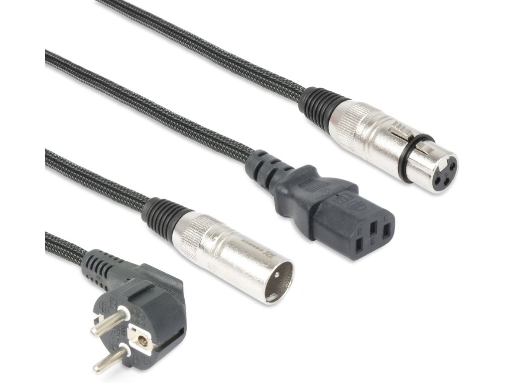 Napájení a DMX signál v jednom kombinovaném kabelu. Díky konektorům Schuko a XLR na jednom konci a IEC a XLR na druhém konci usnadňují tyto kabely zapojení LED efektů, pohyblivých hlav nebo wall washerů.