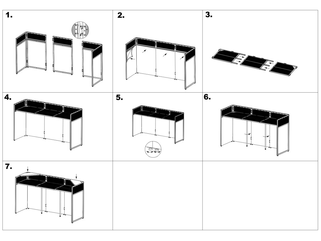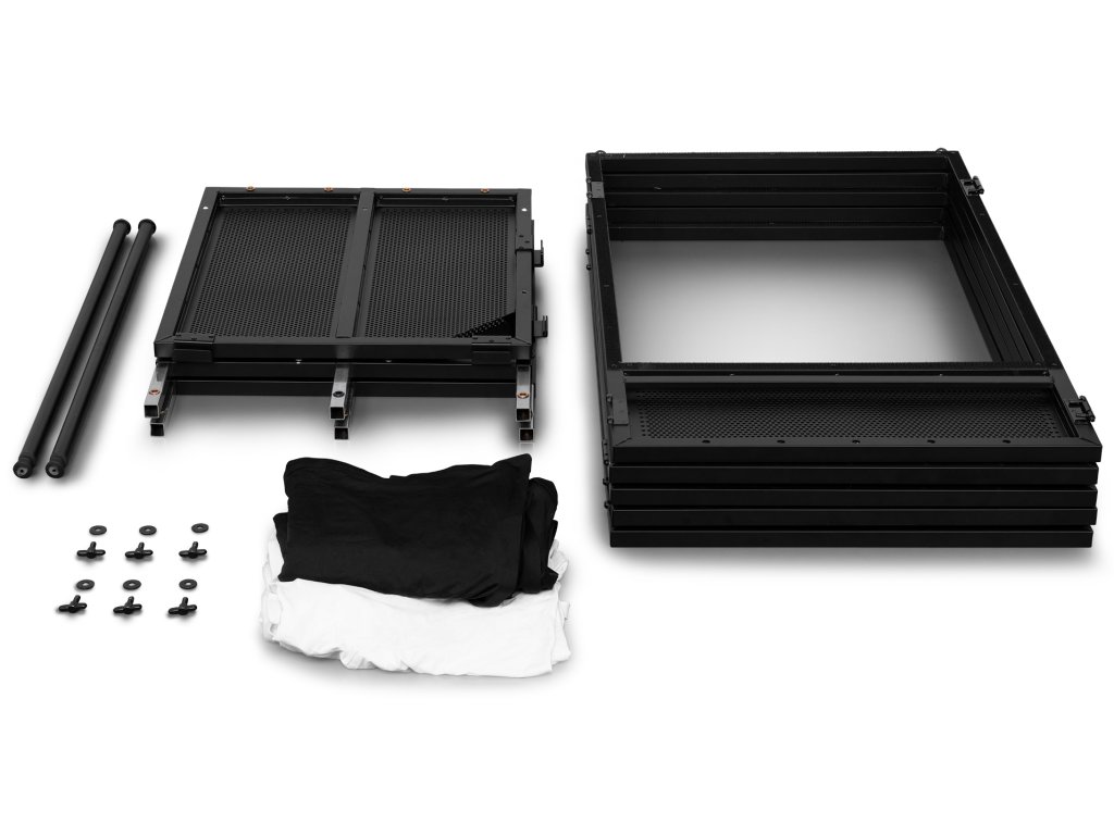 - Obsah balení: DJ stůl, krycí lycra panely (černé + bílé), přepravní taška