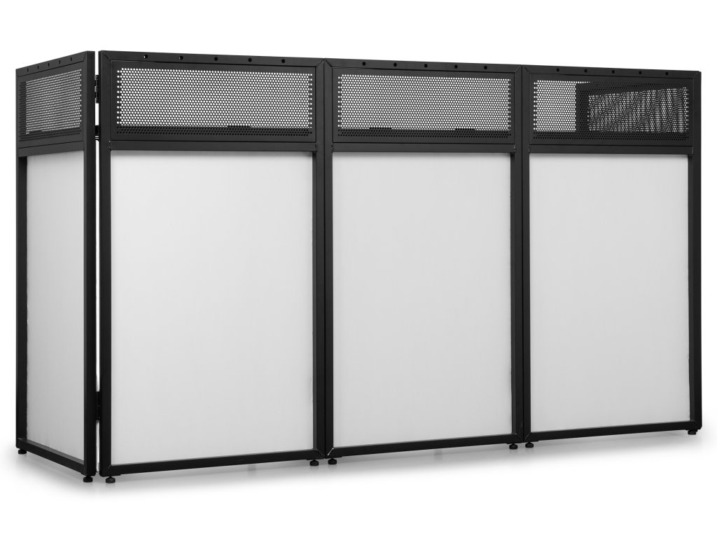 - Skládací DJ stůl o šířce 2 m s perforovanou horní deskou