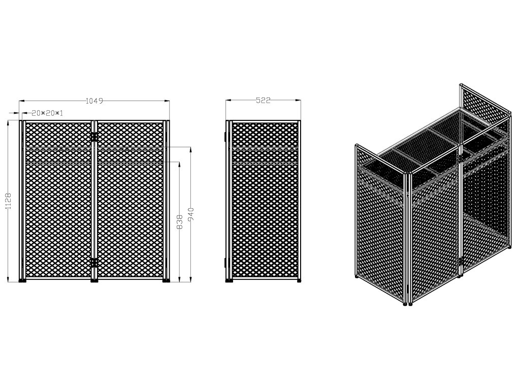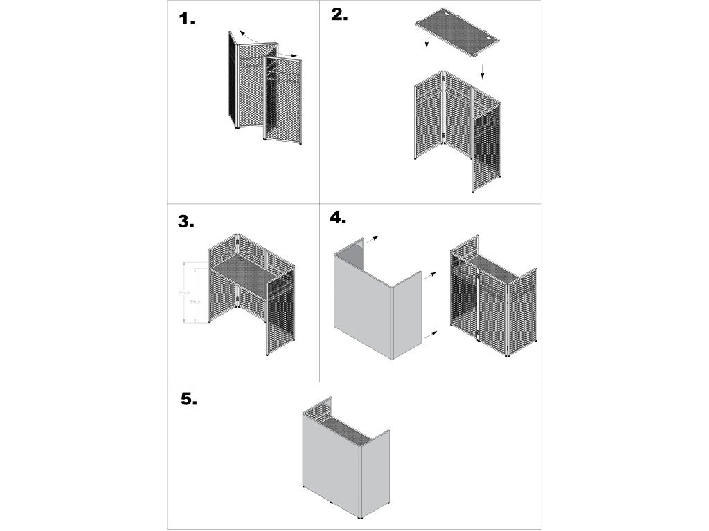 - Skládací DJ stůl o šířce 1 m s perforovanou horní deskou