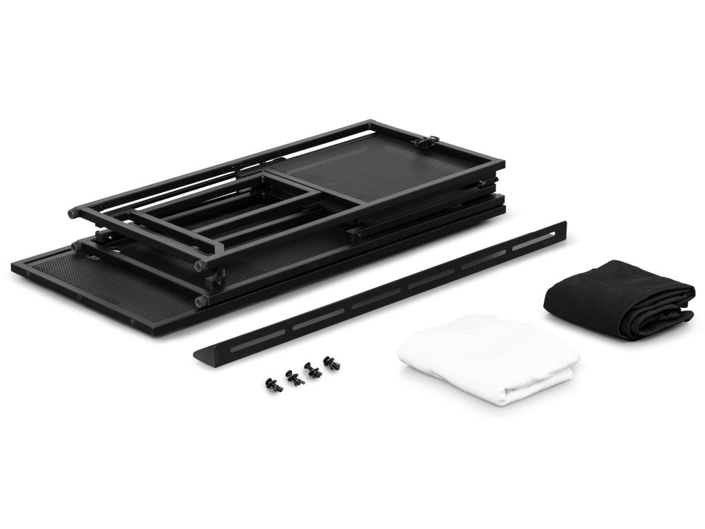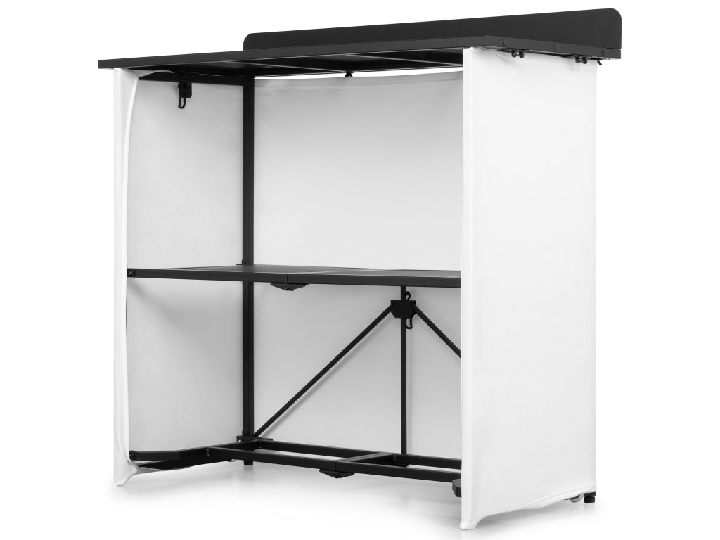 - Obsah balení: DJ stůl, krycí lycra potahy (černé + bílé), přepravní taška