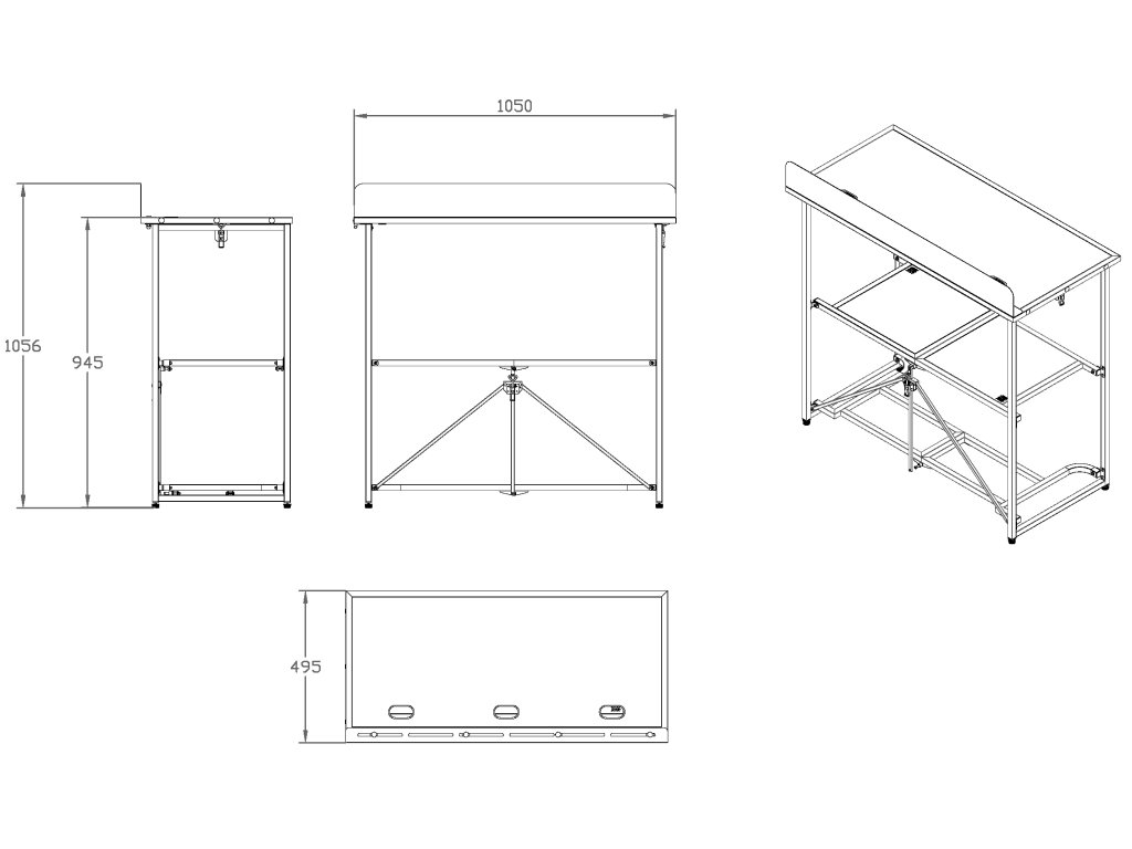 - Rozměry (pracovní deska): 1050 x 495 mm