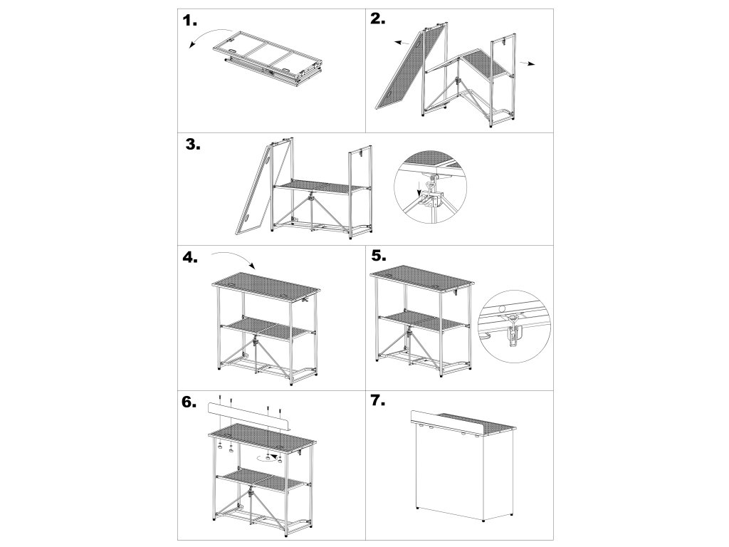 - Skládací DJ stůl o šířce 1 m s perforovanou horní deskou