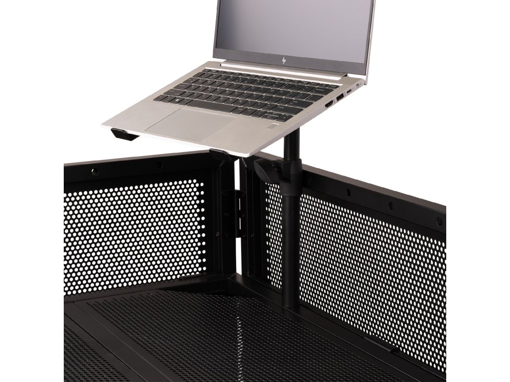 DBLH1 je praktický držák na notebook, který byl speciálně navržen pro použití s většinou DJ pultů Vonyx. Nabízí stabilní a ergonomické řešení pro DJs, kteří chtějí mít svůj notebook (nebo notebooky) během vystoupení po ruce. Tento univerzální držák lze připevnit na různé pozice na rámu stolu.