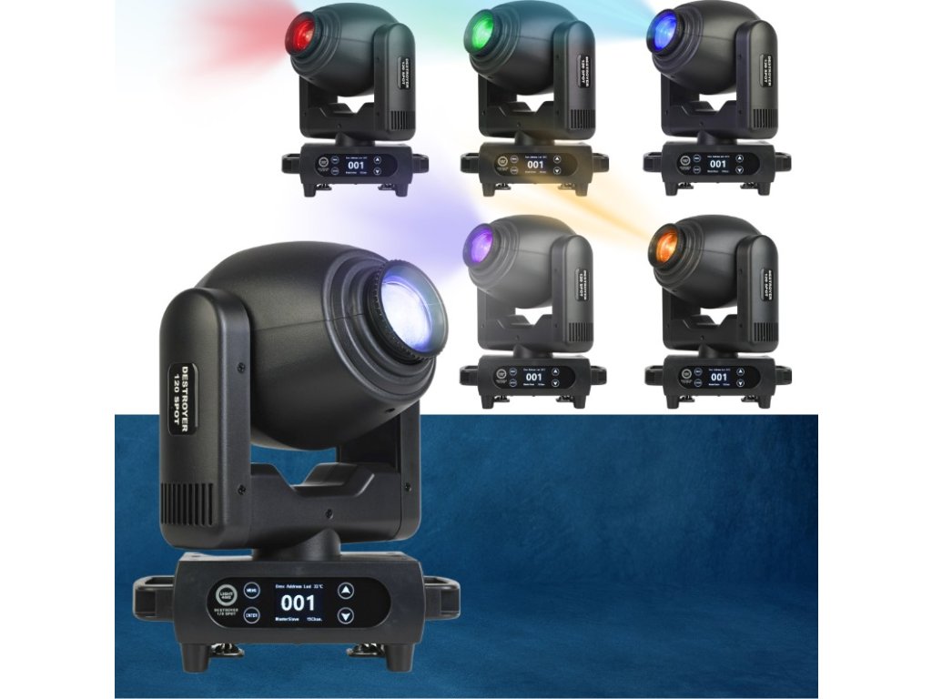 Light4Me Destroyer 120W Spot je vysoce kvalitní, profesionální otočná hlava typu spot, která využívá výkonnou LED diodu s působivým výkonem 120 wattů a úzkým vyzařovacím úhlem, který lze regulovat v rozmezí 11-17° díky manuálnímu systému zoom Zařízení je skvělou volbou pro eventové agentury, mobilní DJ a kapely hledající velkolepé osvětlení pro Silvestry, svatby, oslavy 18. narozenin, maturitní plesy a jiné společenské akce Skvěle se osvědčuje také jako pódiové osvětlení během vystoupení, koncertů, galavečerů, přehlídek, v kulturních centrech, diskotékách a tanečních klubech.