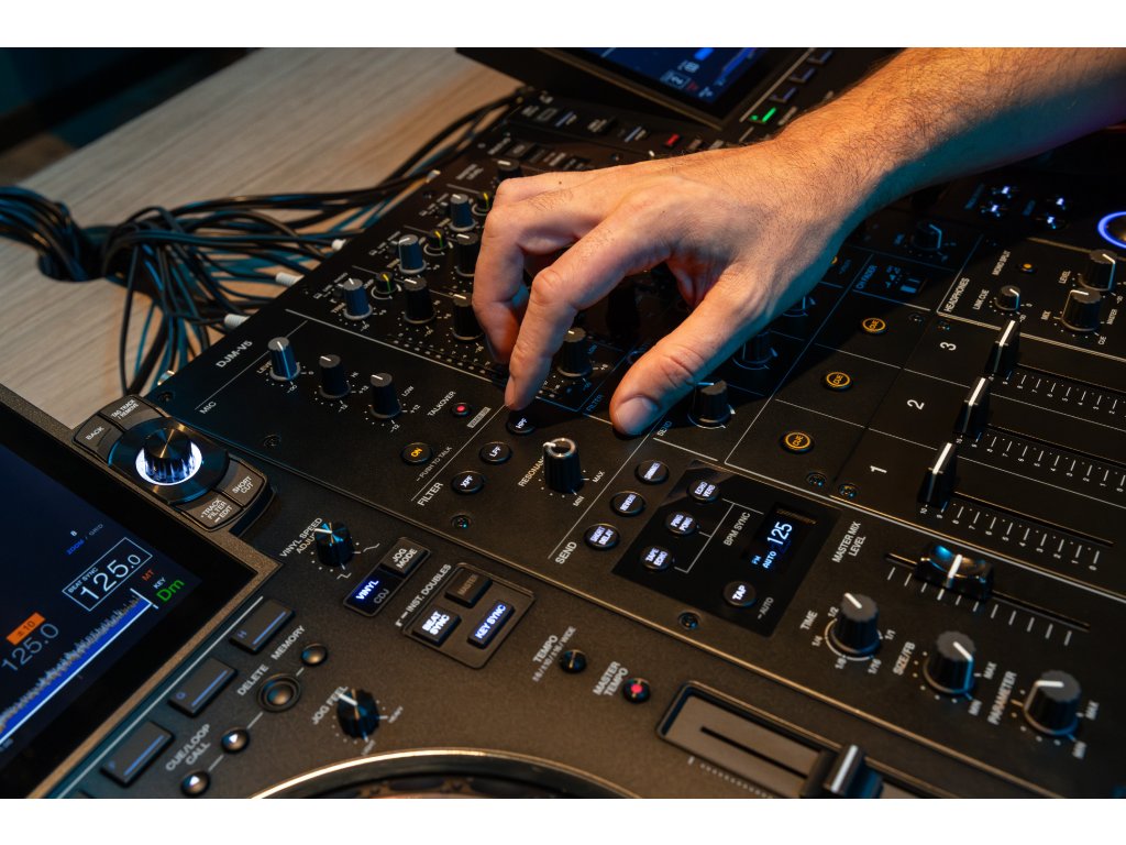 Většina ovládacích prvků bude DJům zvyklým na DJM-V10 okamžitě povědomá. Čtyřpásmový ekvalizér, kompresor, filtr a Send FX poskytují stejnou hloubku ovládání zvuku jako u vlajkové lodi AlphaTheta osvědčené na festivalech, ale v podstatně kompaktnějším provedení. Na rozdíl od modelu V10, který je k dispozici ve standardní i long fader verzi, je DJM-V5 speciálně navržen pro technické mixování a standardně je vybaven 60mm dlouhými fadery.