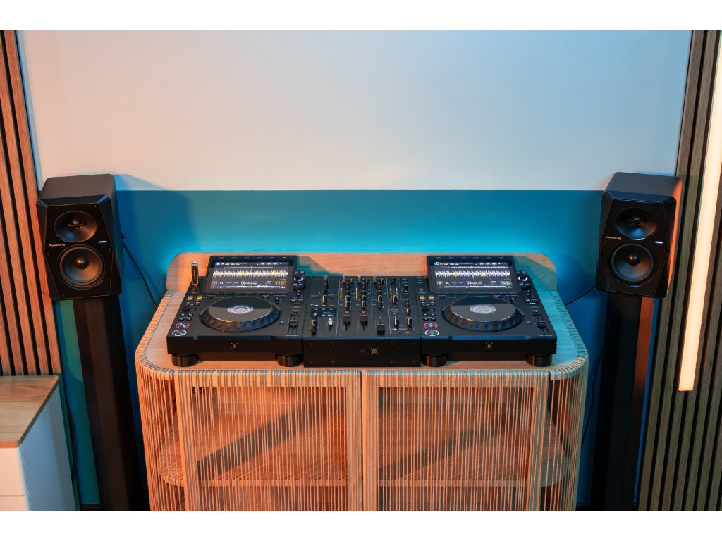 AlphaTheta DJM-V5 je kompaktní tříkanálový DJ mixážní pult určený pro DJs, kteří staví své sety jako příběh – s důrazem na hudební vyprávění a plynulé přechody. DJM-V5, postavený na nejnovější audio architektuře AlphaTheta, kombinuje výjimečnou kvalitu zvuku s pokročilou konektivitou, včetně USB-C Multi I/O a bezdrátového připoslechu do sluchátek SonicLink s ultra nízkou latencí.