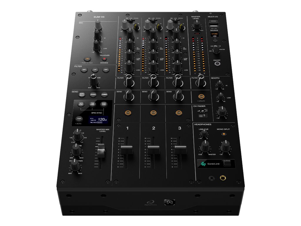 AlphaTheta DJM-V5 je navržený pro DJs, kteří ocení výběr, kvalitu zvuku a jemné ovládání, nabízí špičkové audio a výkonné nástroje v rafinovaném, malém formátu.