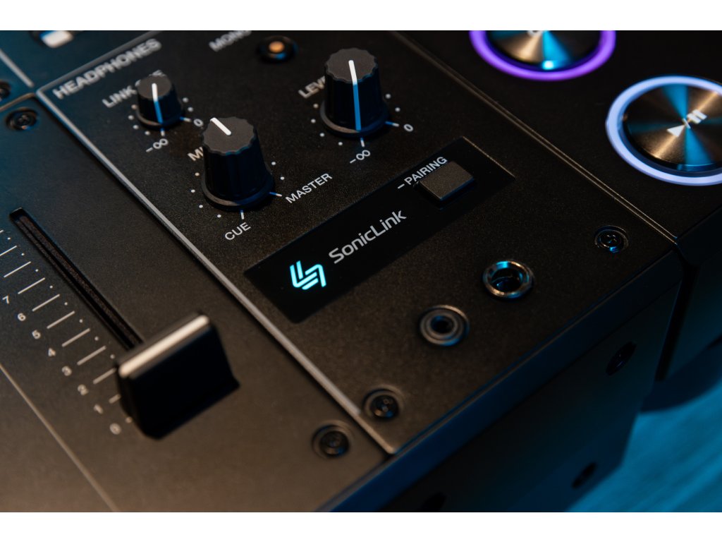DJM-V5 je také vybaven bezdrátovou technologií SonicLink s nízkou latencí od AlphaTheta. Kompatibilní sluchátka, jako jsou HDJ-F10, lze spárovat přímo s mixem, což vám umožní volný pohyb bez omezení kabelů při připoslechu nebo monitorování.