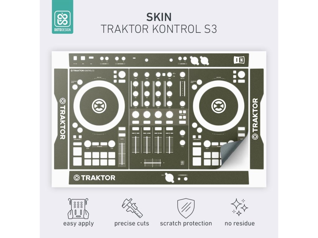 Nalepovací skin pro MIDI kontroler Native Instruments Traktor Kontrol S3 v provedení FULL COLORS, barva army green (vojenská zelená).
