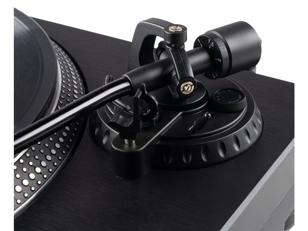 DT6000 je profesionální gramofon s přímým náhonem, navržený pro bezproblémový provoz, špičkovou kvalitu zvuku a moderní možnosti připojení. Jeho srdcem je výkonný motor s přímým náhonem a vysokým točivým momentem přesahujícím 3,6 kg/cm, který zajišťuje okamžitý start a stabilní otáčení talíře při rychlosti 33⅓ i 45 RPM. Vychutnejte si bohatý analogový zvuk se stabilitou a přesností, kterou vyžadují skuteční milovníci vinylů. DT6000 je vybaven odolným raménkem ve tvaru písmene S, nastavením anti-skate a předinstalovanou přenoskou typu MM (moving magnet) a zajišťuje tak vynikající sledování drážky a teplý, detailní zvuk. Navíc vám vestavěný phono předzesilovač poskytuje flexibilitu pro přímé připojení k reproduktorům, mixážním pultům nebo zesilovačům – není potřeba žádný externí předzesilovač. Integrovaný USB výstup vám umožňuje snadno převést vaše vinylové desky do digitálních zvukových souborů, což je ideální pro poslech na cestách nebo archivaci.
