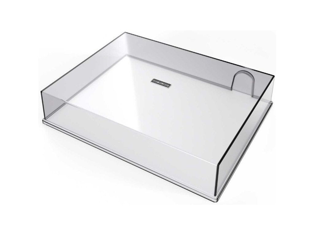 Kryt je precizně tvarovaný pro dokonalé usazení na gramofon. Konturované okraje zajišťují stabilitu, zatímco praktické vybrání v zadní části umožňuje bezpečné uložení raménka i s protizávažím.