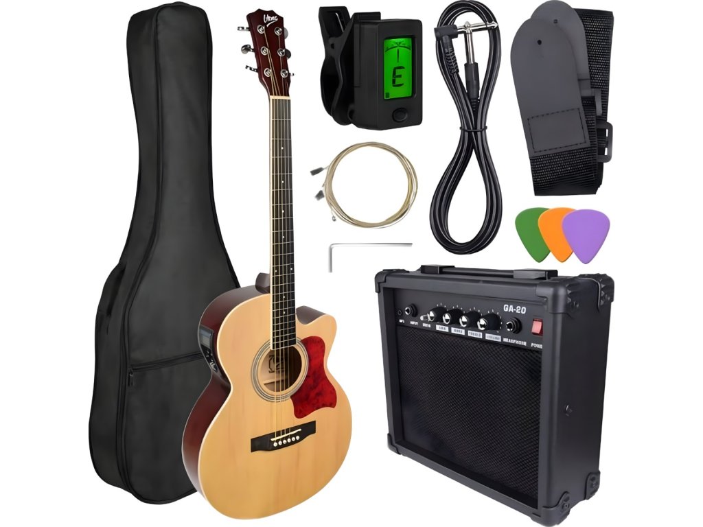 EAG SET je sada s elektroakustickou kytarou, což znamená, že na ni můžete hrát jak čistě akusticky (bez zesilovače), tak i jako na elektrickou kytaru (se zesilovačem). To umožňuje flexibilitu ve stylu hry a široký výběr repertoáru – od pohodové hudby k večernímu táboráku přes blues až po tvrdší rockové skladby. Součástí sady je také kytarové kombo s přepínačem Drive, které umožňuje ozvučení nástroje s čistým i zkresleným zvukem.