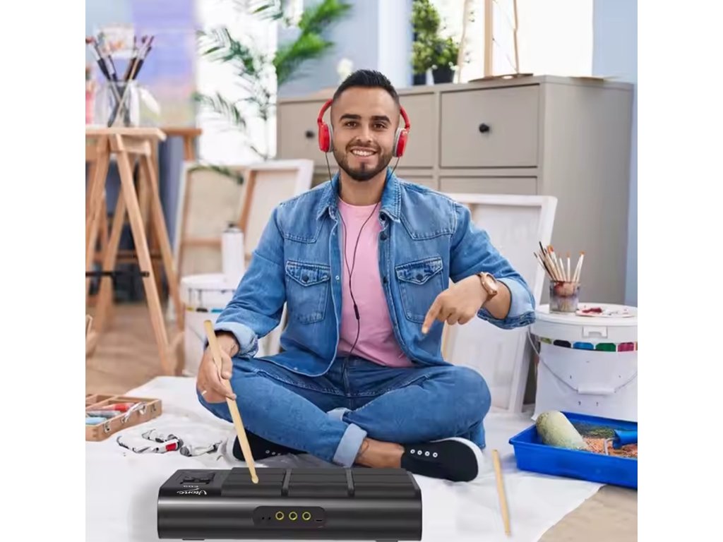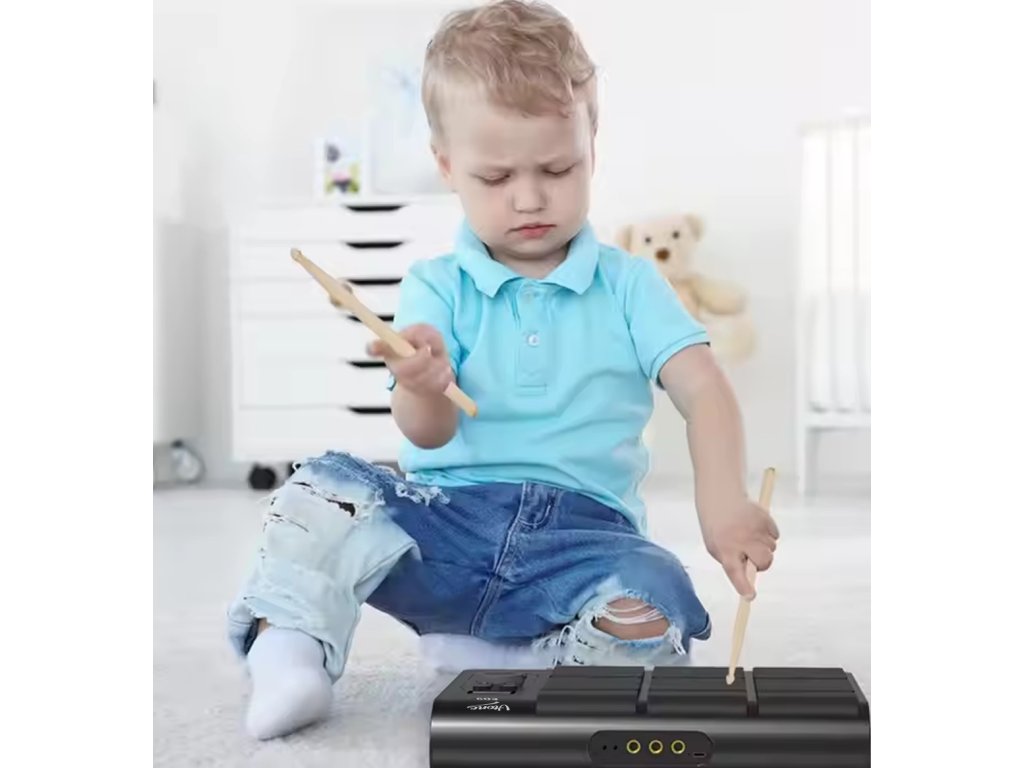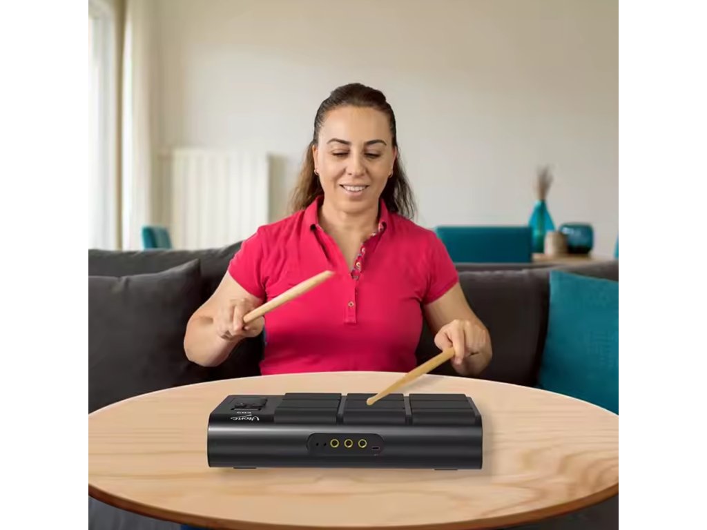 Hledáte kompaktní a přenosné řešení pro cvičení hry na bicí? V-TONE ED9 je bateriová bicí souprava s 9 dynamickými pady, která vám umožní vychutnat si hudbu na jakémkoli místě! Díky vestavěnému lithium-iontovému akumulátoru s kapacitou 2000 mAh můžete hrát bez přerušení po dlouhou dobu, aniž byste museli být připojeni k síti. V-TONE ED9 je ideálním řešením pro začátečníky, nadšence i profesionály, kteří chtějí trénovat i na cestách.
