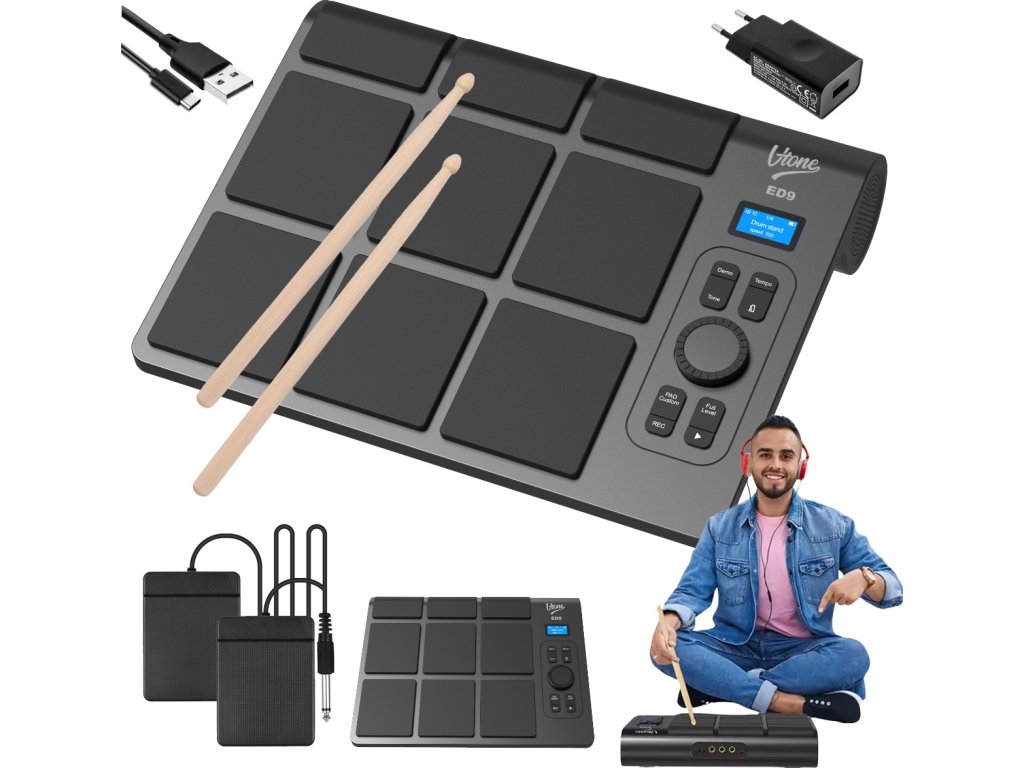 Přenosná elektronická bicí souprava V-TONE ED9 – hudba vždy po ruce