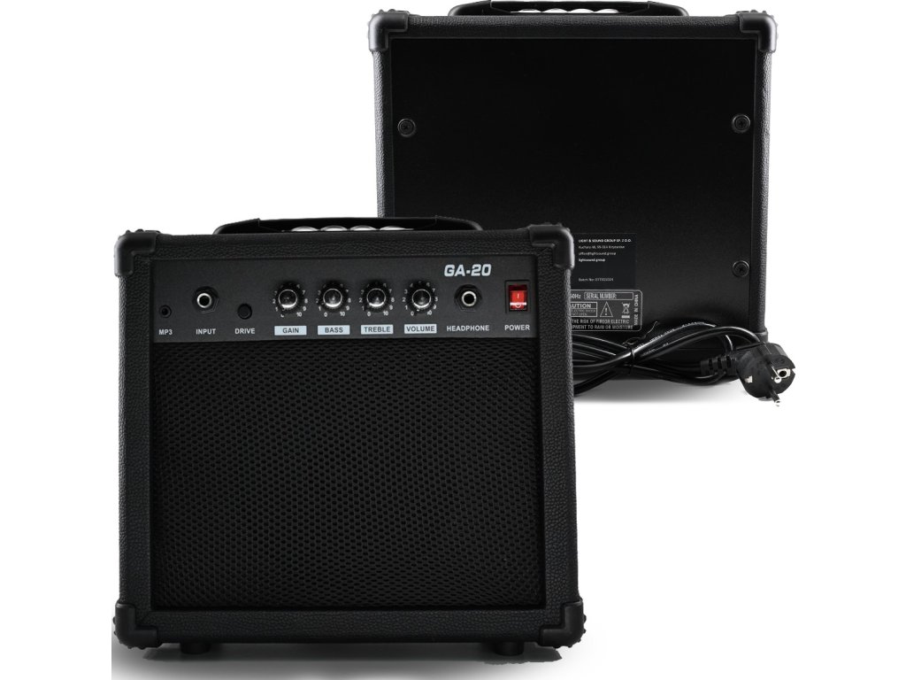 Součástí setu je zesilovač o výkonu 20W s přepínačem DRIVE, který vám umožní experimentovat s čistým i zkresleným zvukem – ideální pro rock, blues nebo metal. Díky MP3 vstupu a sluchátkovému výstupu můžete cvičit, aniž byste rušili okolí, a to i pozdě večer. Intuitivní potenciometry pro ovládání hlasitosti, výšek, basů a zkreslení (gain) vám dávají plnou kontrolu nad barvou a silou zvuku. Kompaktní rozměry a praktické madlo zajistí, že si své kombo můžete vzít kamkoliv s sebou.