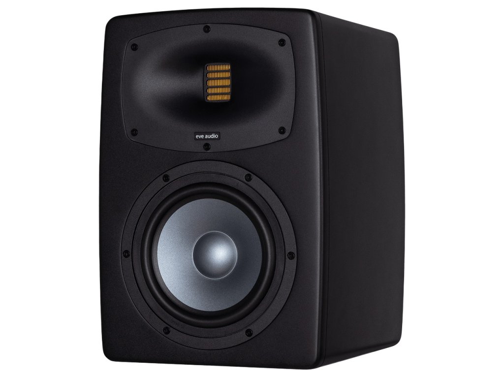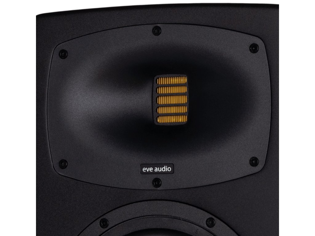 - Přední vícebarevné logo „eve audio“ poskytuje okamžitou vizuální zpětnou vazbu o stavu systému, signalizuje clipping, zobrazuje průběh aktualizace firmwaru a další provozní stavy