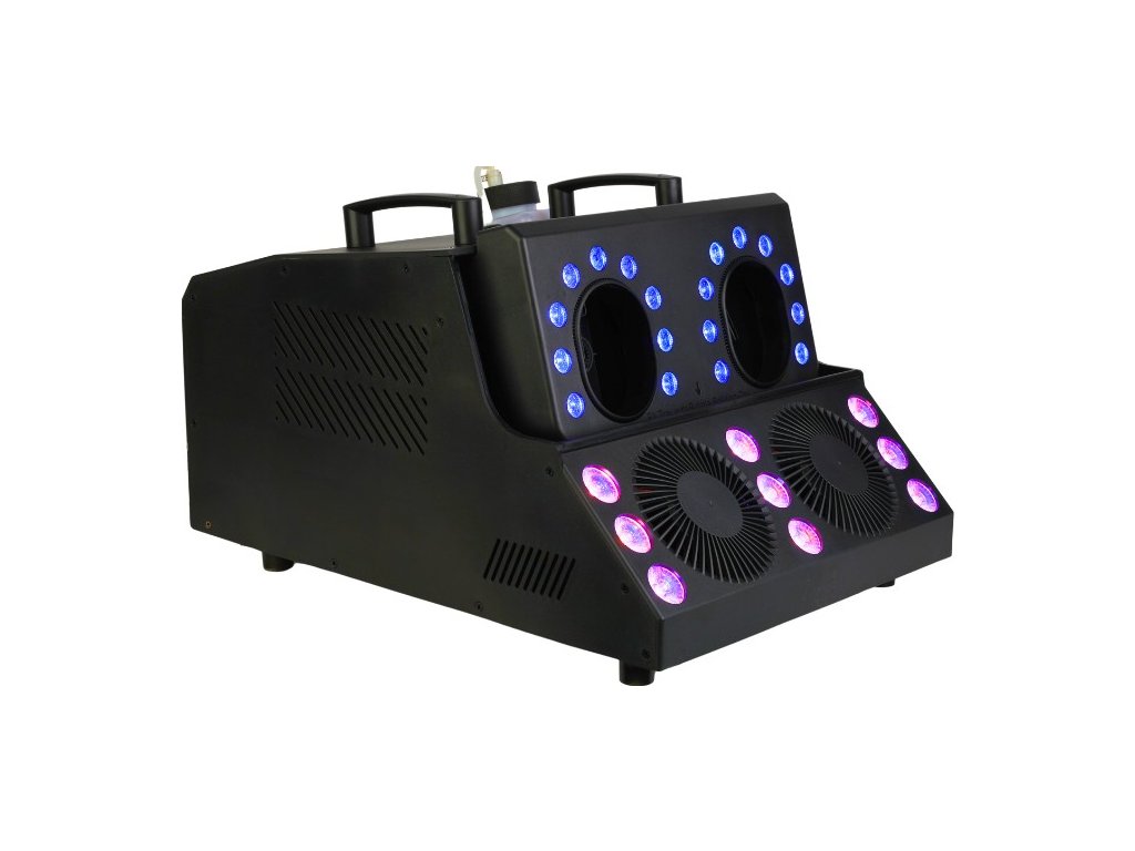Light4Me FBL Storm je profesionální výrobník mlhy a bublin s LED efektem, ideální pro každou akci. Díky osmnácti 3wattovým diodám RGB LED (3v1) a devíti 3wattovým diodám RGBWAUV LED (6v1) nabízí zařízení úžasné světelné efekty, které přitáhnou pozornost každého hosta a dokonale podsvítí rychle vytvářené bubliny a kouř. Navíc stroboskopický efekt s nastavitelnou rychlostí dále obohacuje atmosféru a vytváří dynamické a překvapivé momenty. Představte si, jak skvěle by vypadala vaše narozeninová oslava nebo svatba s tímto zařízením