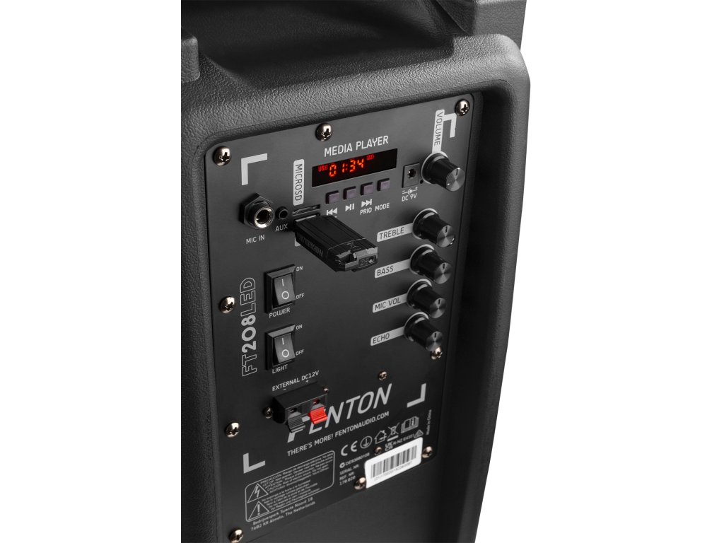 Přenosné zvukové systémy řady FTLED s duálními basovými reproduktory jsou zvukové systémy typu vše v jednom, speciálně navržené pro večírky, představení a PA účely. Přenosné a bezdrátové reproduktory si můžete vzít s sebou kamkoli a přehrávat hudbu ze vstupních možností BT streamování, micro SD karty, USB nebo externího zařízení přes AUX. Tyto zvukové systémy jsou vybaveny zatahovací rukojetí a robustními kolečky a jsou ideální pro jakékoli venkovní nebo vnitřní aktivity. Skvělé pro karaoke zpěv s příslušenstvím reproduktoru včetně kabelového mikrofonu a plně funkčního dálkového ovladače. Vestavěná dobíjecí baterie poskytuje spolehlivé napájení, a pokud je baterie vybitá, lze systém jednoduše připojit pomocí dodaného kabelu USB. Díky LED diodám za mřížkami jsou tyto reproduktory příjemným doplňkem každé párty a jiné příležitosti.