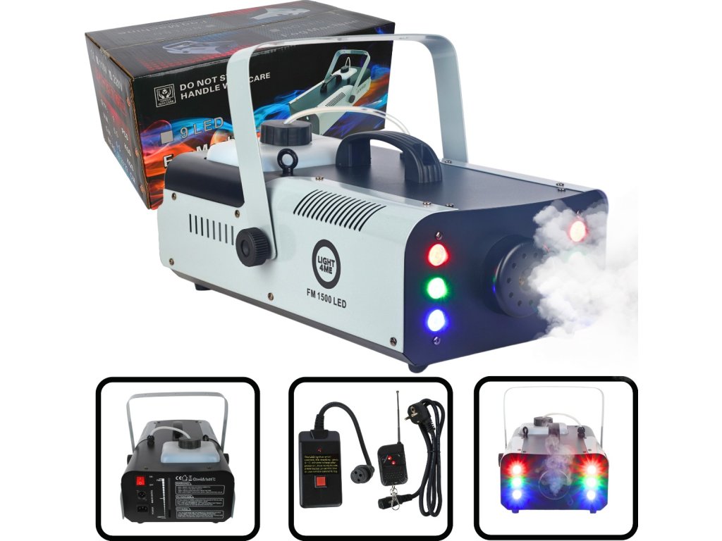 Vestavěné RGB LED diody (2 červené, 2 zelené, 2 modré) dodávají každé show úžasnou atmosféru a dokonale zvýrazňují vyfukovanou mlhu.Kryt z odolného železa v elegantní černo-stříbrné barvě působí profesionálně a zaručuje dlouhou životnost. Ať už připravujete firemní večírek, živý koncert nebo soukromou akci – Light4Me FM 1500 LED je volbou právě pro vás.